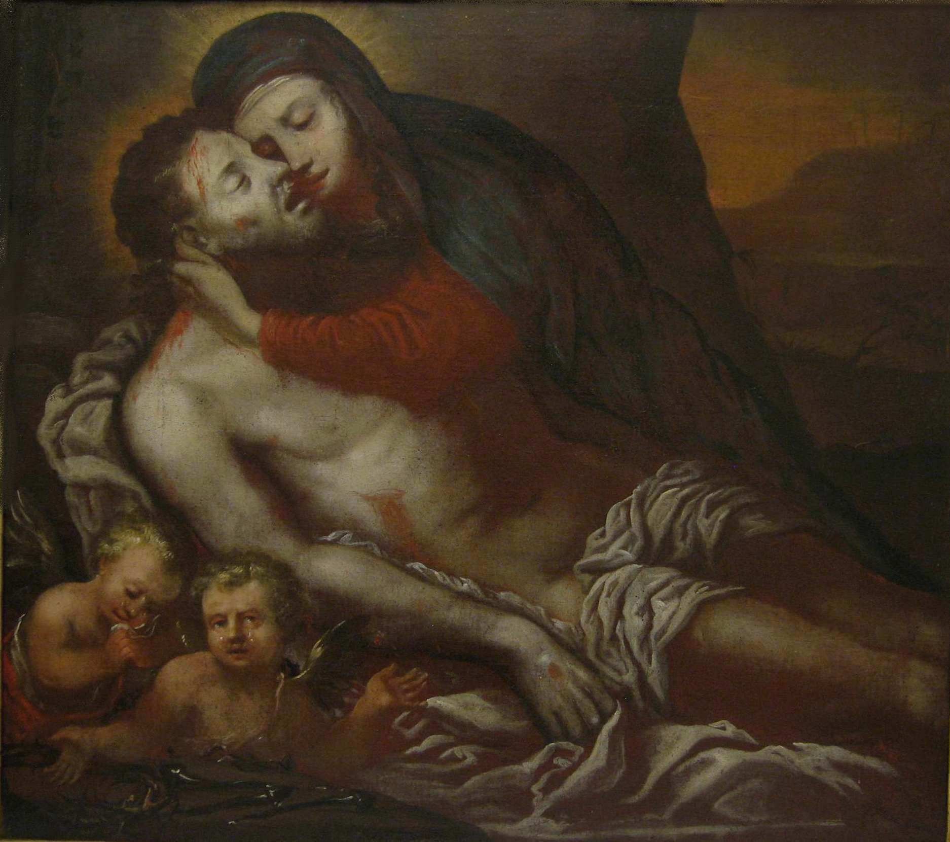 Kirchenmaler Elias Schyz, 1714 "Die Beweinung Christi". Öl auf Leinwand. Zustand nach der Restaurierung (nach Reinigung).