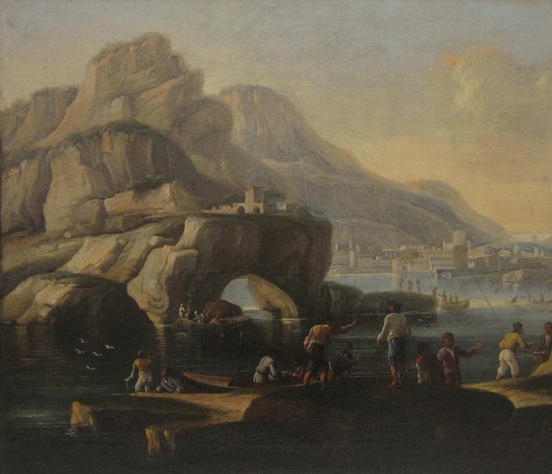 Johannes Lingelbach (1622-1674) zugeschr., um 1650 “Hafenszene”. Öl auf Leinwand. Zustand nach der Restaurierung.