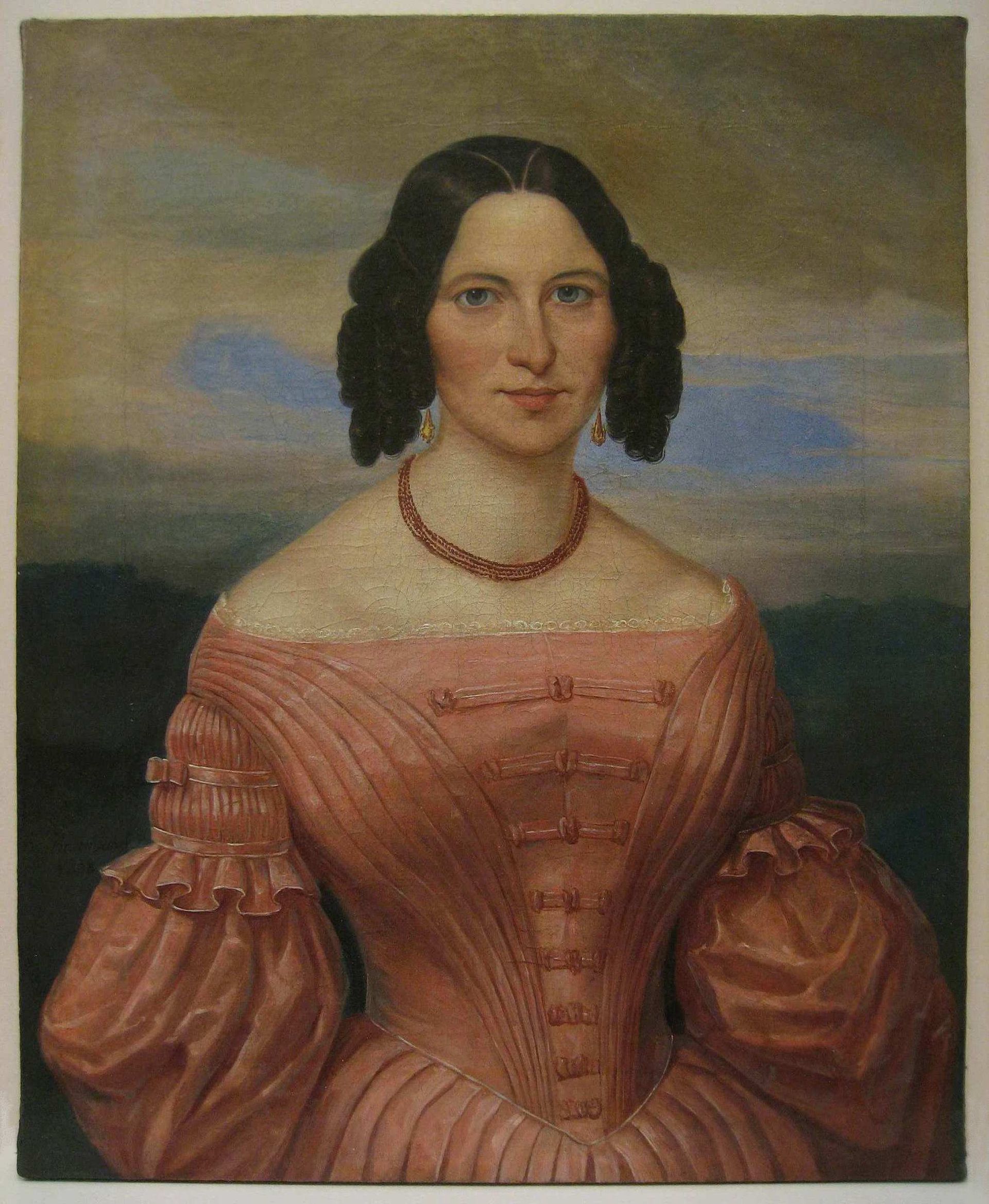 Matthias Rademacher (1804-1890), 1838 "Bildnis einer Adeligen". Öl auf Leinwand. Zustand nach der Restaurierung.