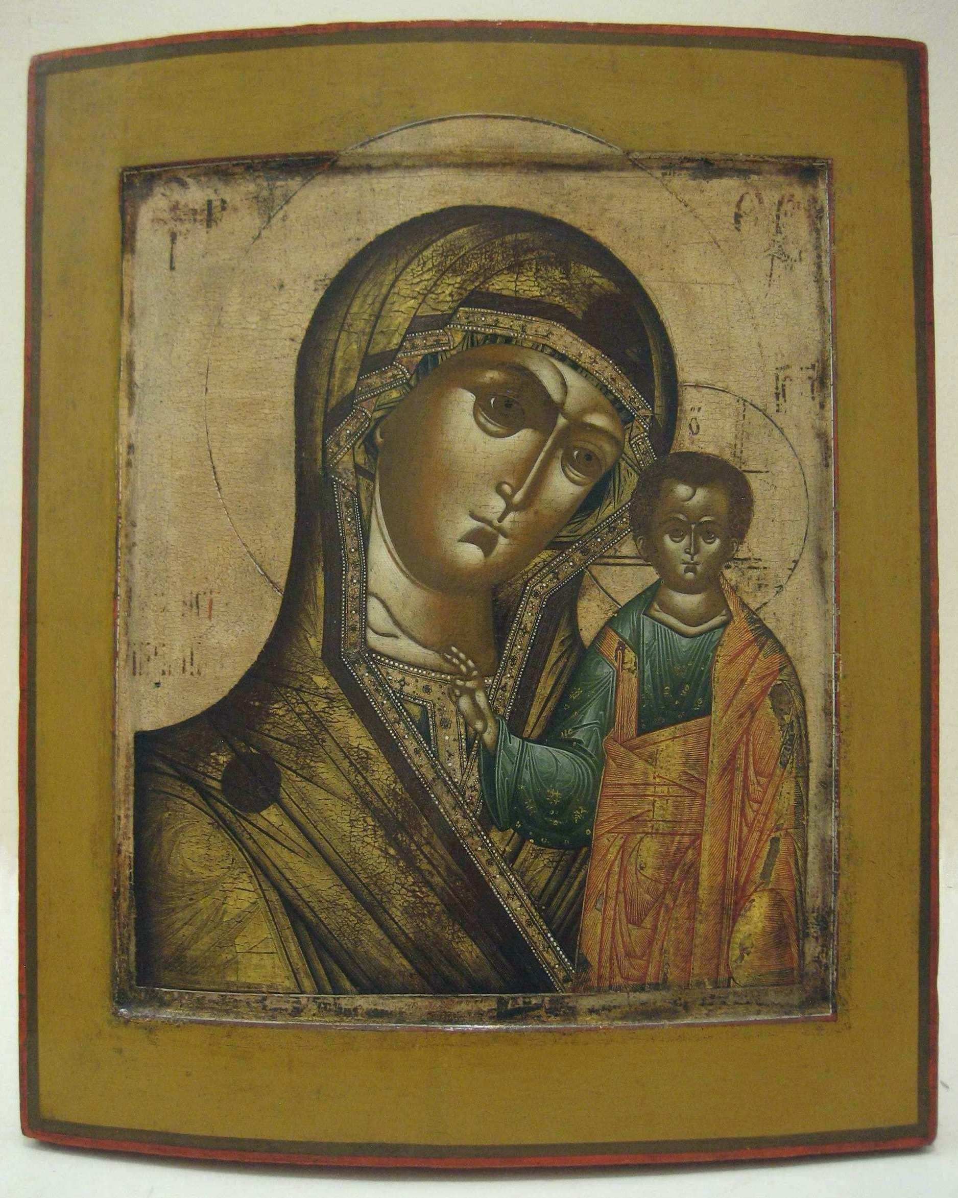 Russischer Ikonenmaler, 19. Jh. "Gottesmutter Kazanskaja". Eitempera auf Holz. Zustand nach der Restaurierung.