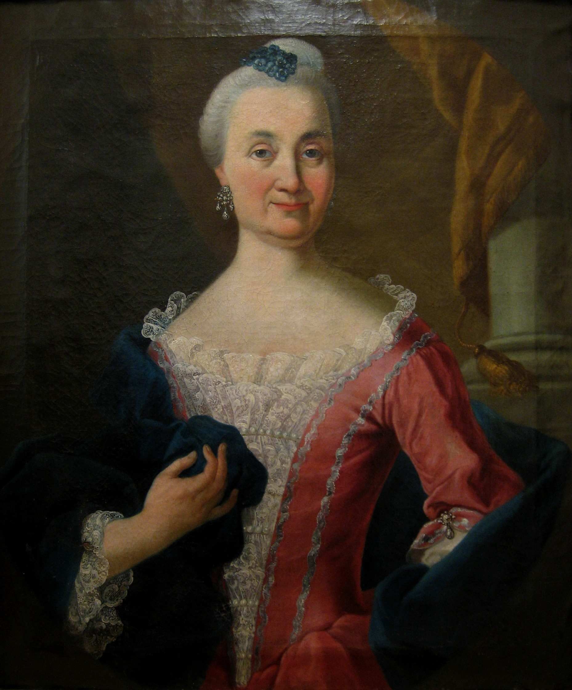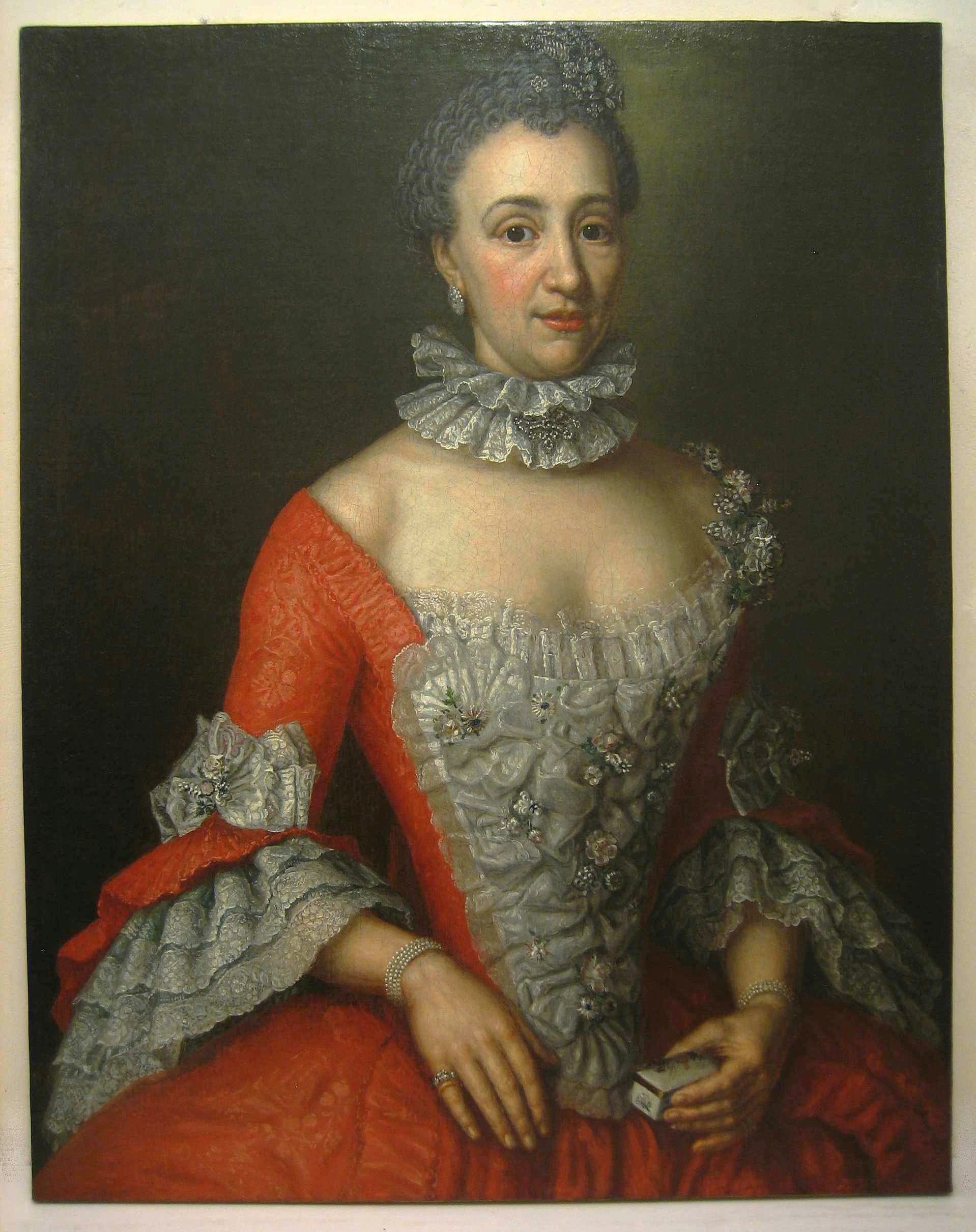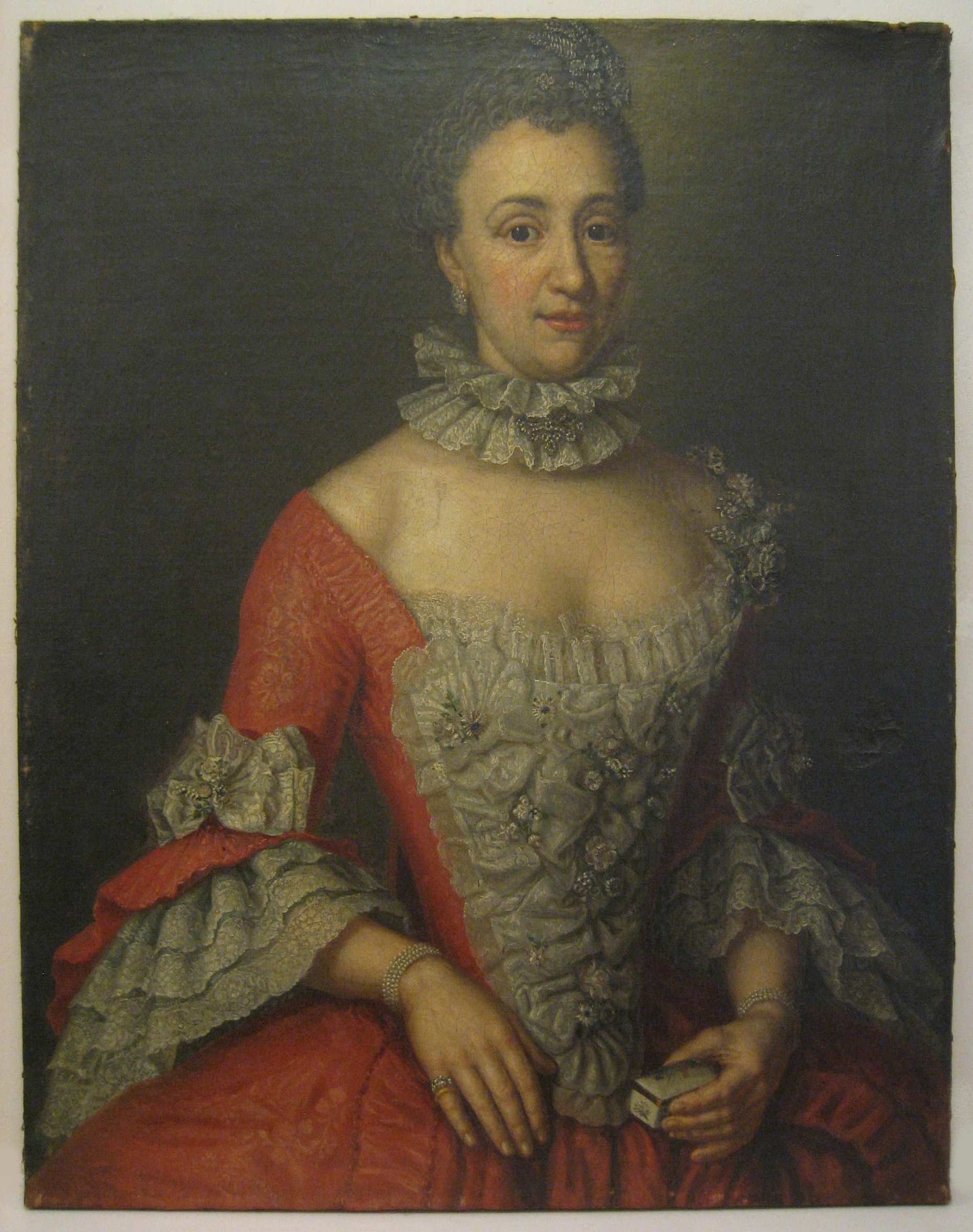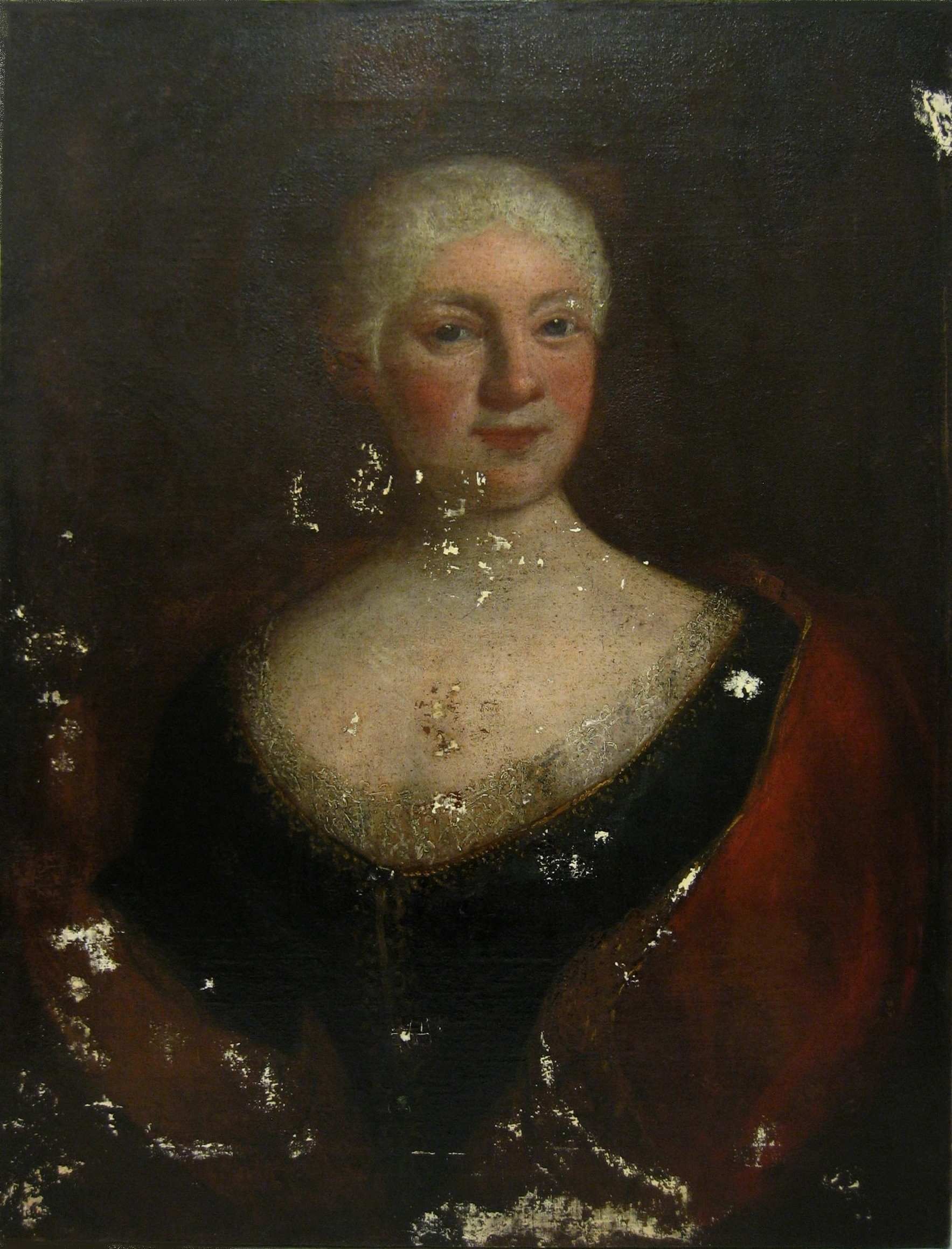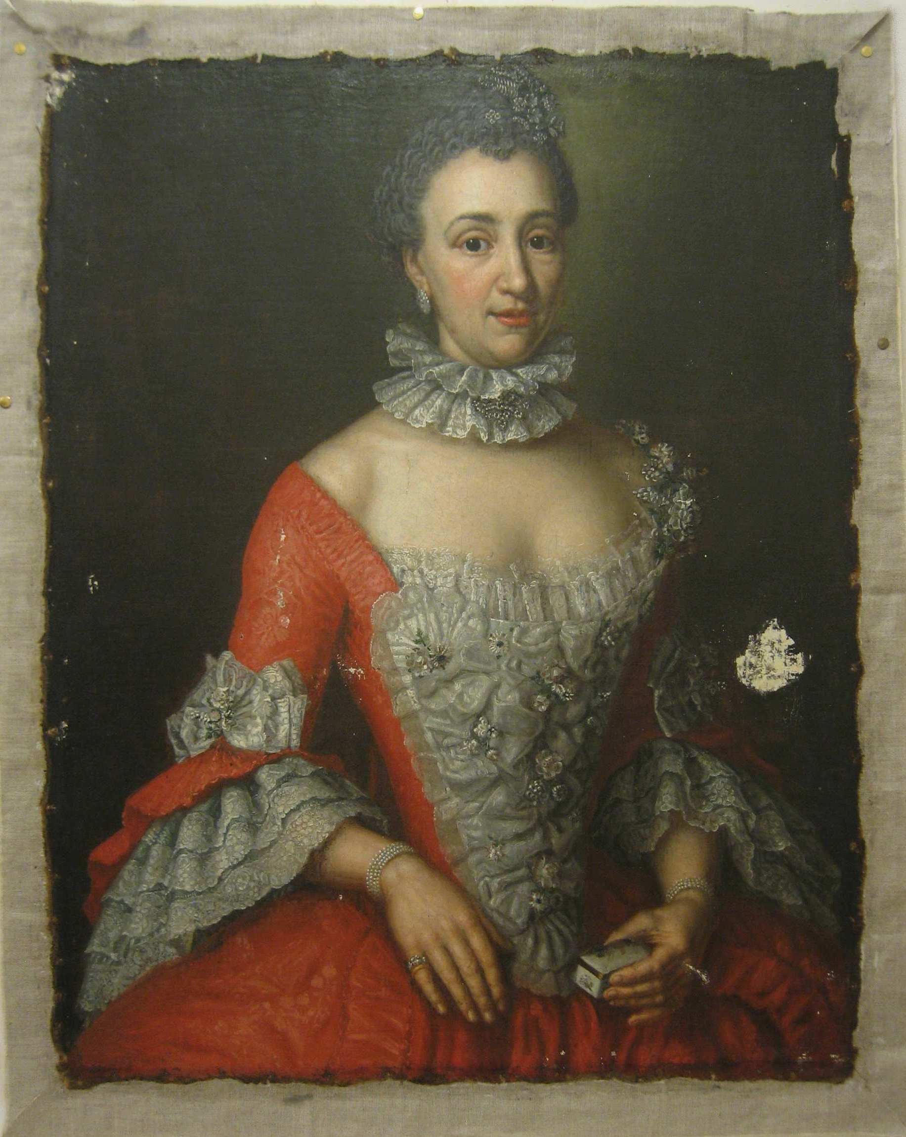 Ringe, Christoph Gottfried (1713-1797) "Catharina Dorotha Mahner". Öl auf Leinwand. Zustand nach der Restaurierung (nach Wiederaufspannen auf den Keilrahmen und nach Retuschen).