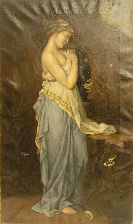 Französischer Maler, nach 1850 "Junge Römerin mit Krug". Öl auf Leinwand. Zustand nach der Restaurierung.