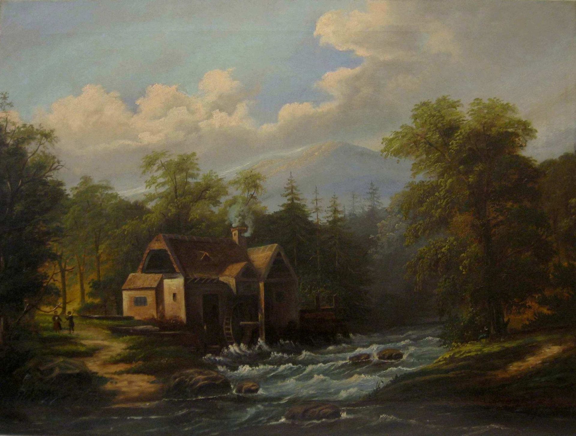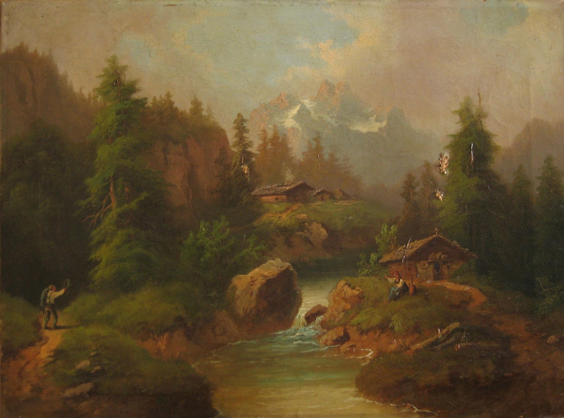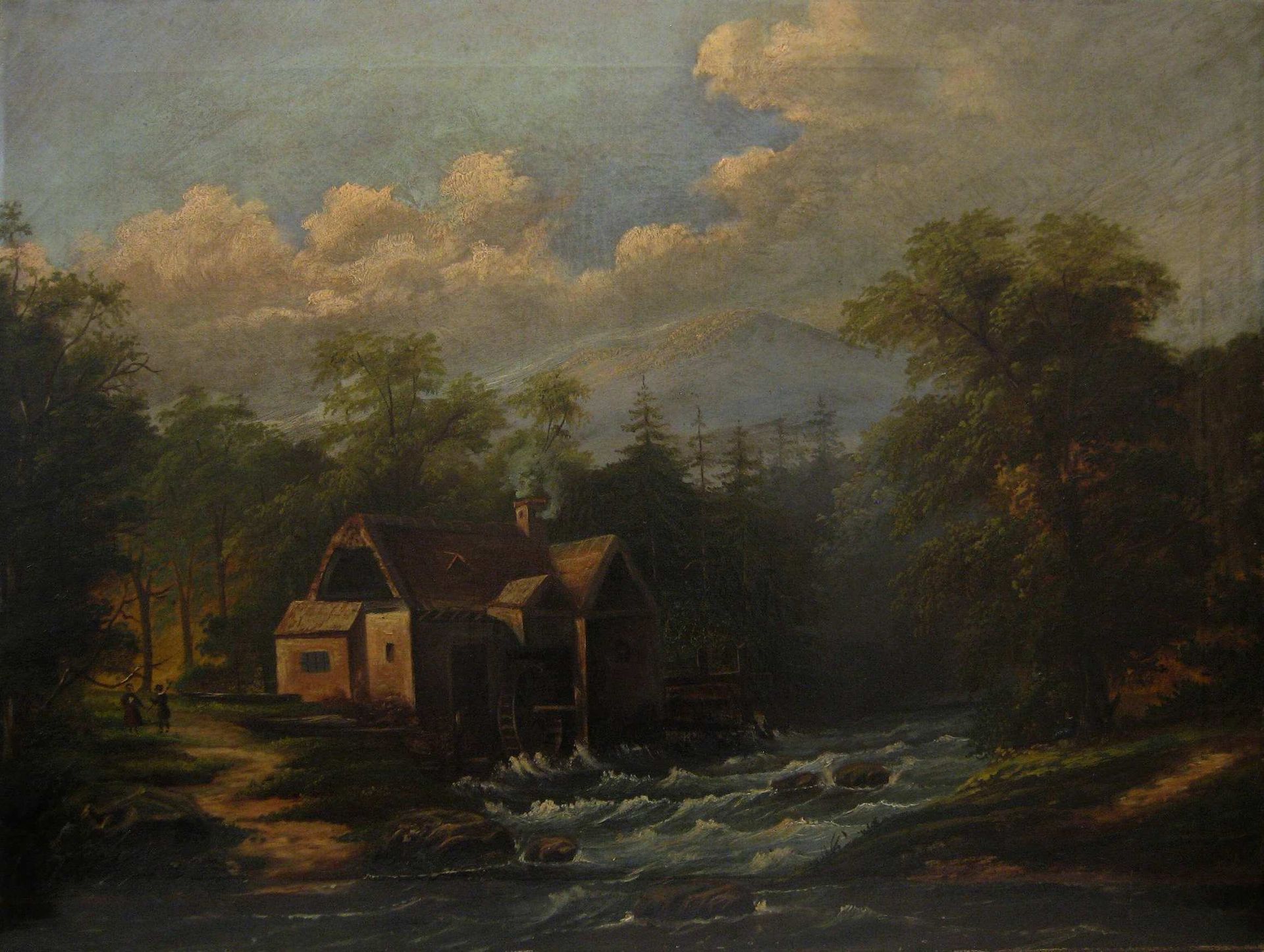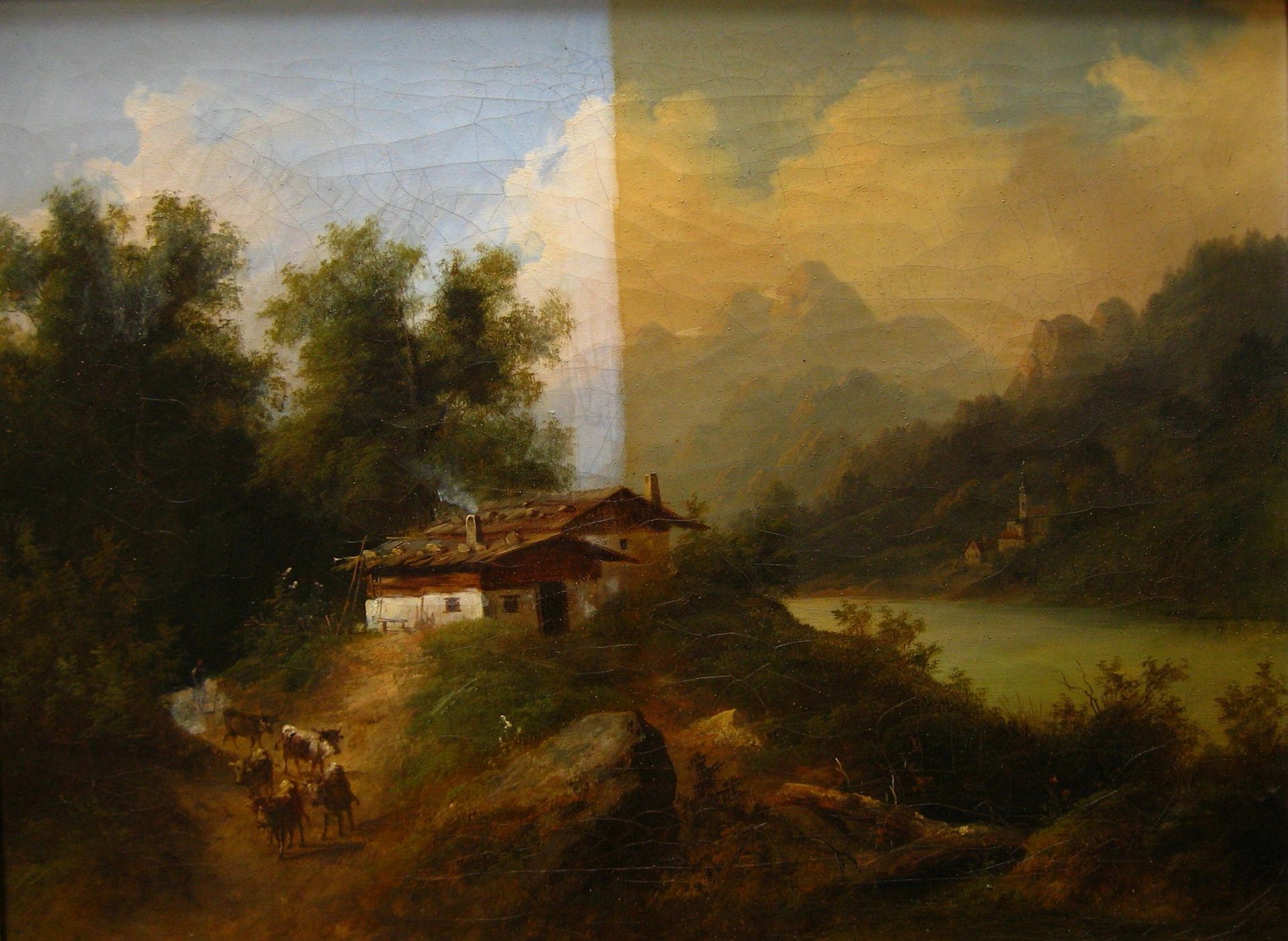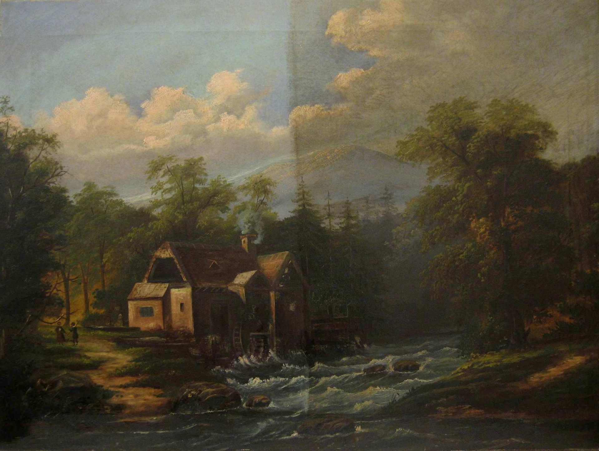 Franz Barbarini (1804-1873), 2. Hälfte des 19. Jh. "Alpenlandschaft mit Wassermühle". Zustand nach der Restaurierung.
