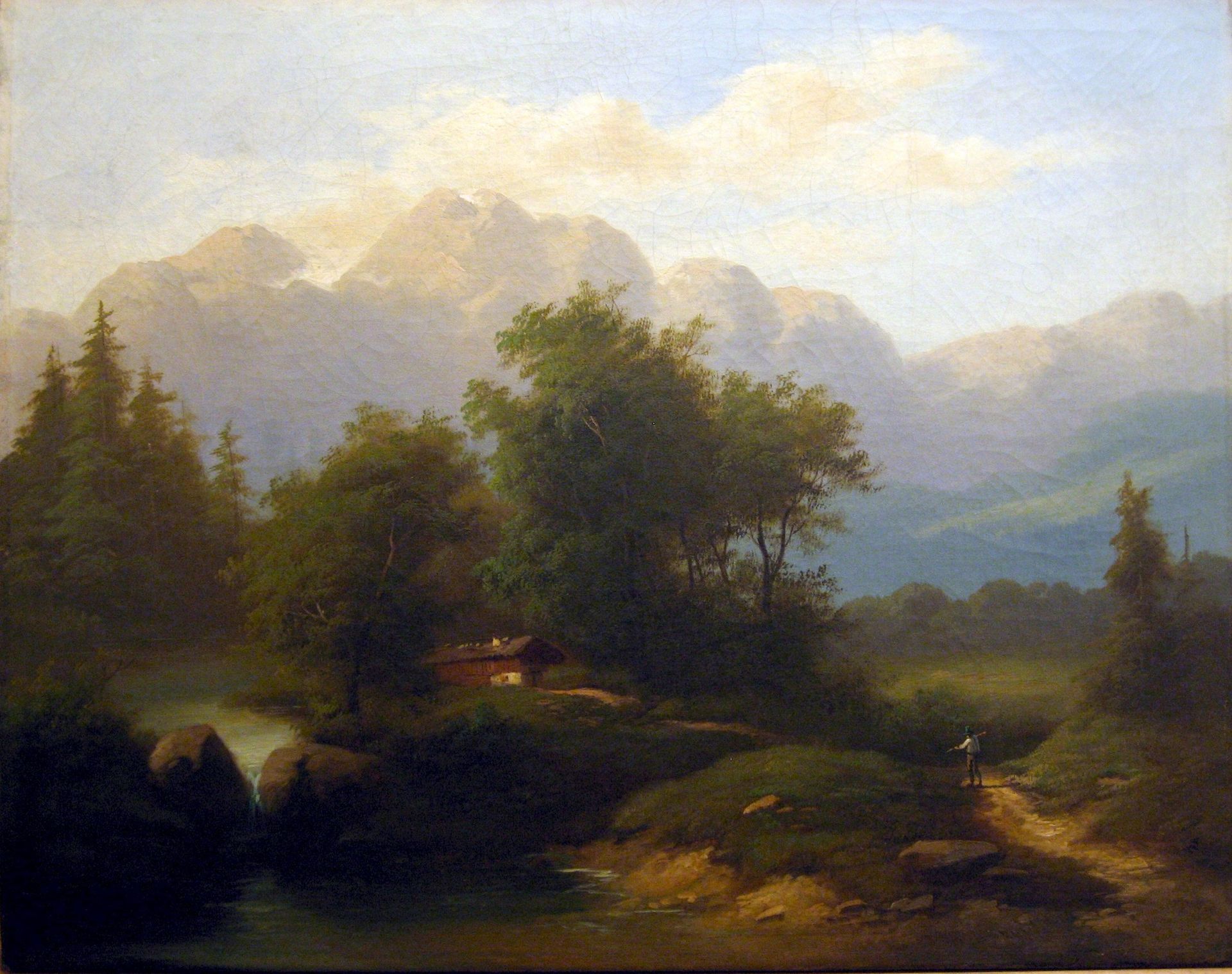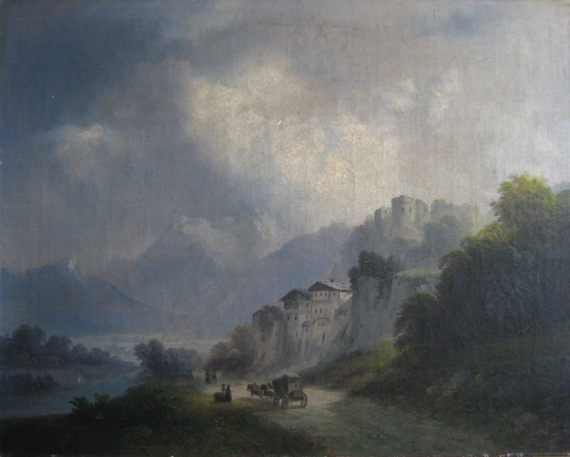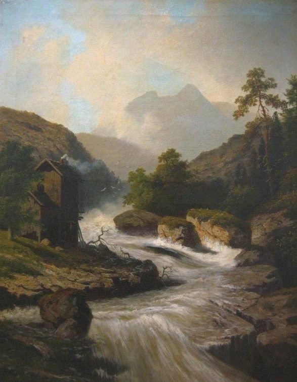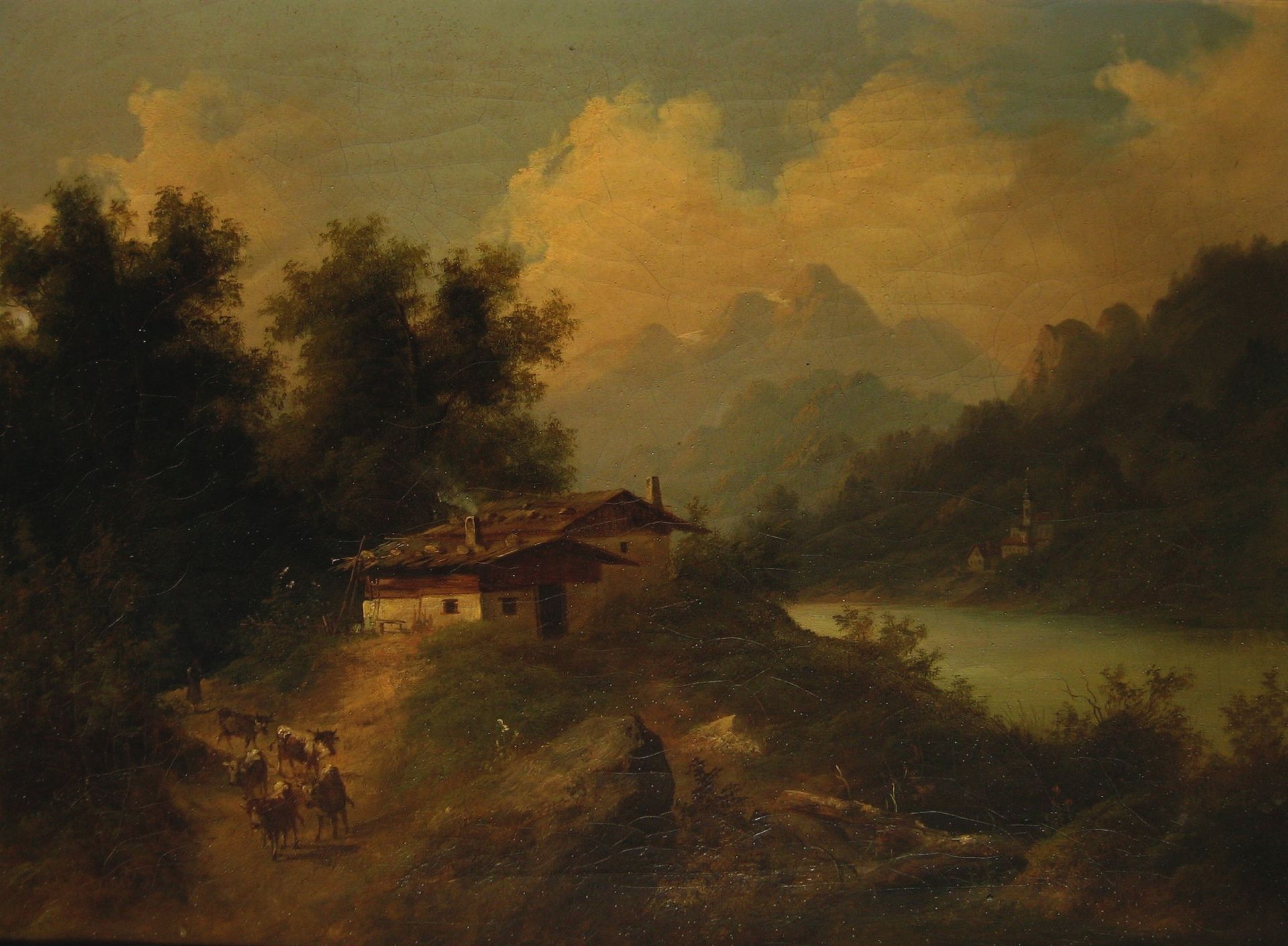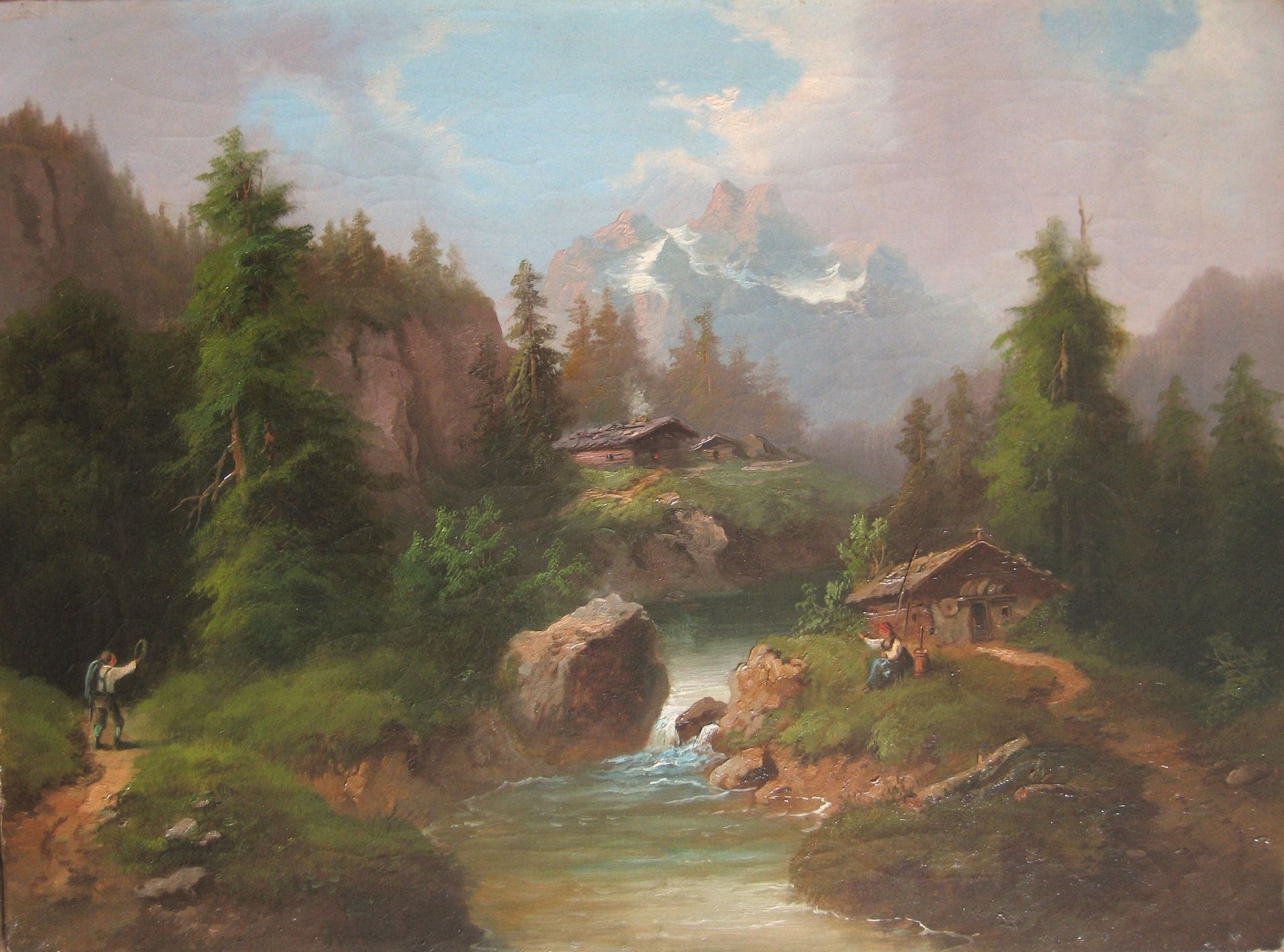 Franz Barbarini (1804-1873), 2. Hälfte des 19. Jh. "Alpenlandschaft mit Wassermühle". Zustand nach der Restaurierung.