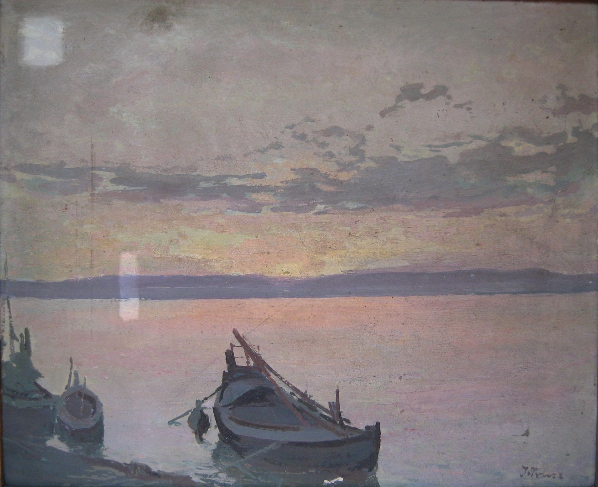Waldemar Schlichting (1896-1970), nach 1960 "Sonnenuntergang an der Ostsee". Öl auf Leinwand. Zustand nach der Restaurierung.