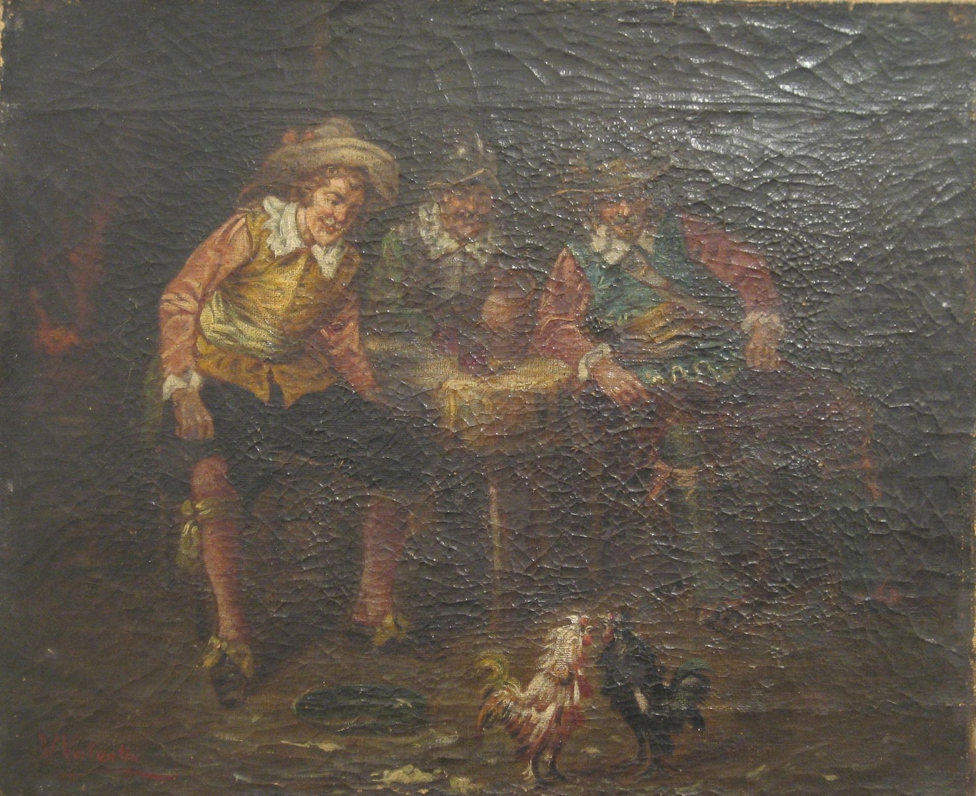 Französischer Maler, 2. Hälfte des 19. Jh. "Zouaven-Biwak". Öl auf Leinwand. Zustand vor der Restaurierung (Himmelspartie vollständig übermalt, Bildoberfläche insgesamt leicht verschmutzt).