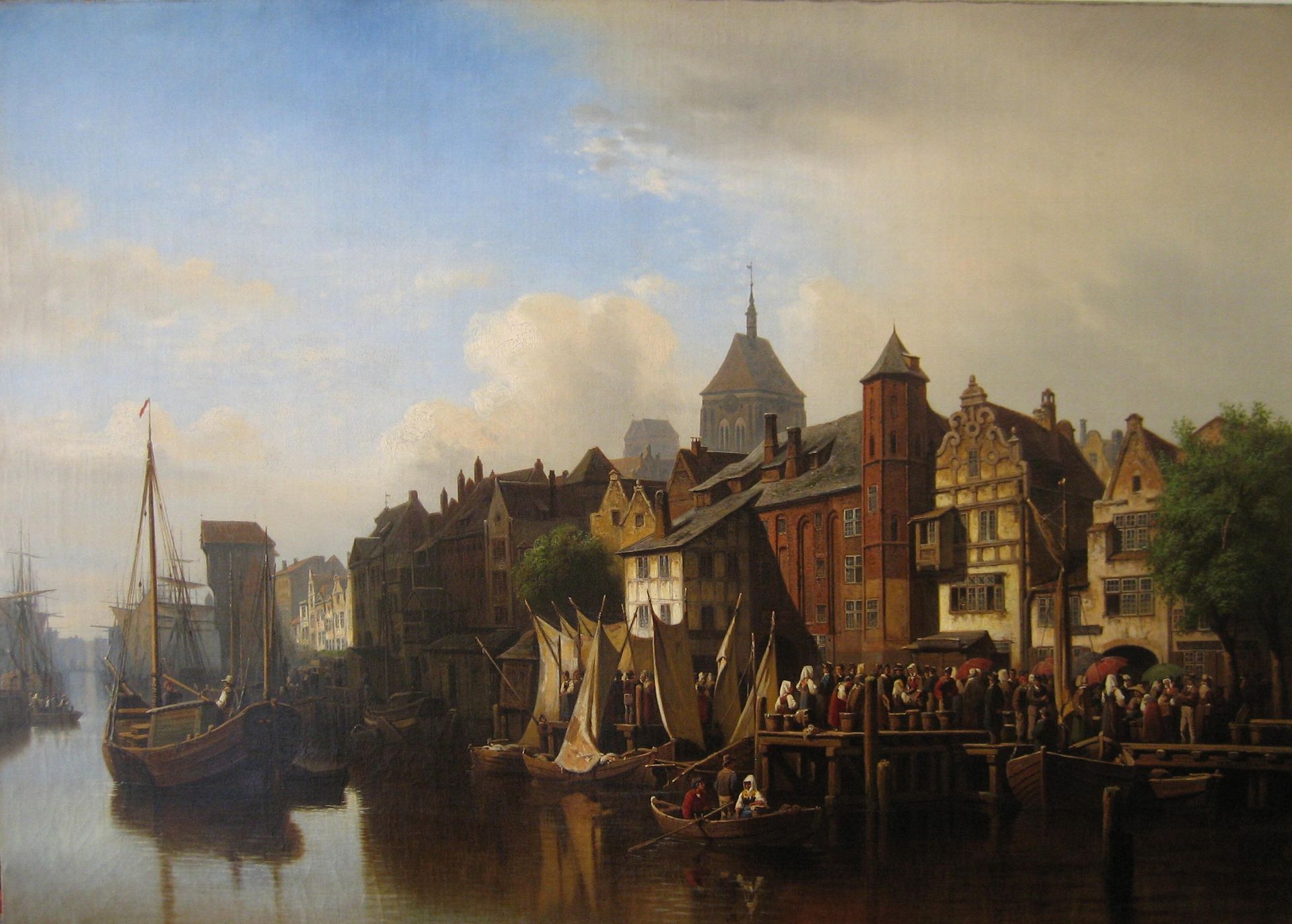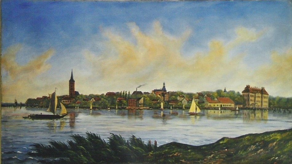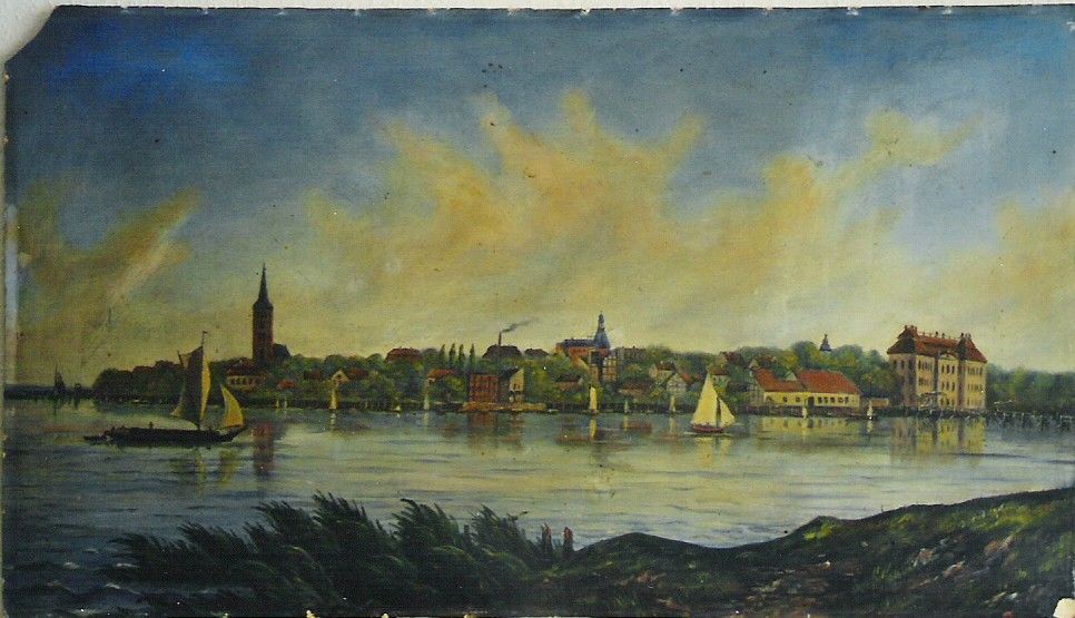 Deutscher Biedermeiermaler, 1830 "Ansicht von Brandenburg an der Havel". Öl auf Eisenblech. Zustand nach der Restaurierung.