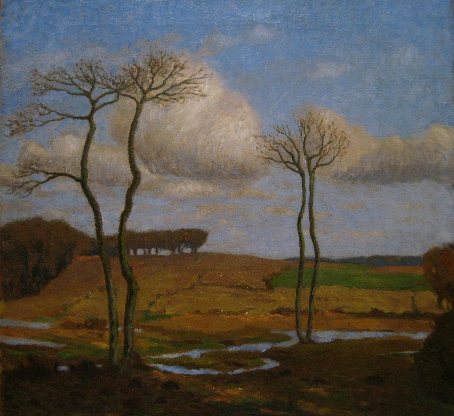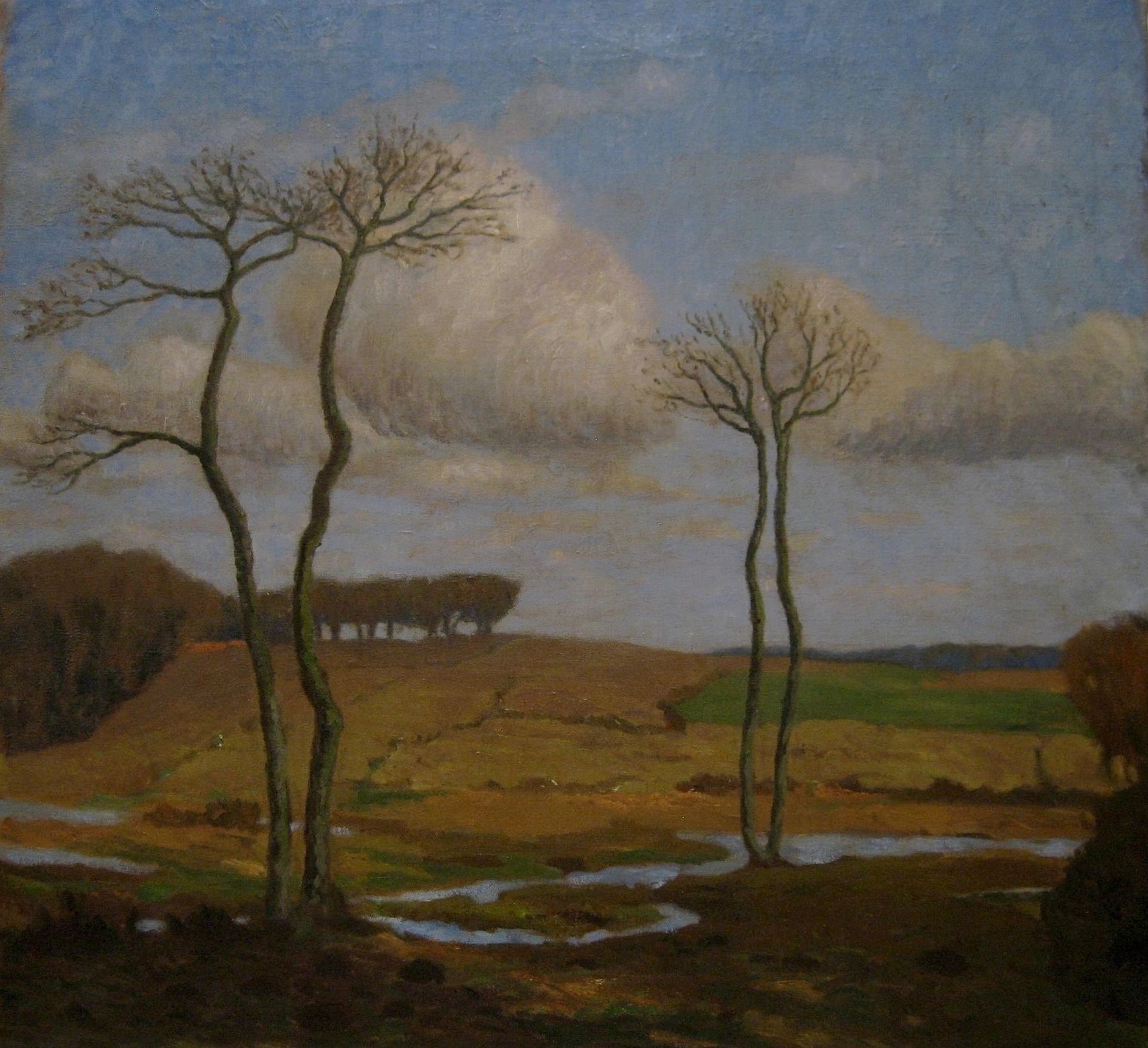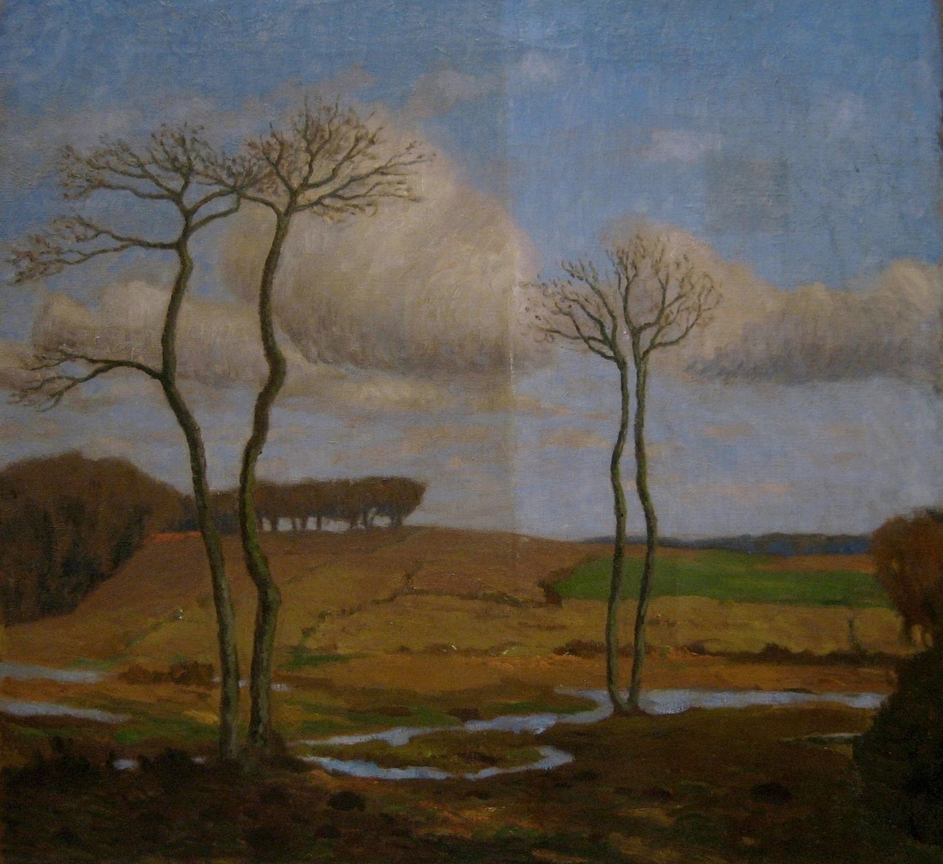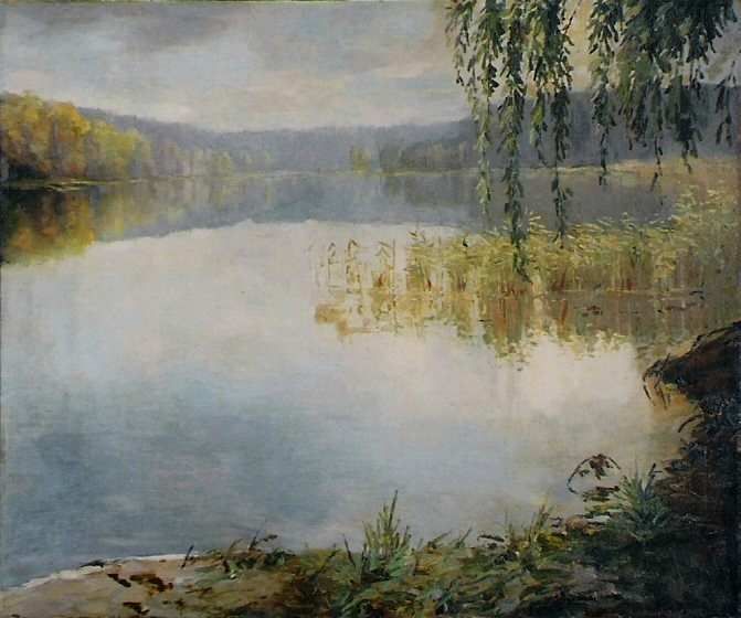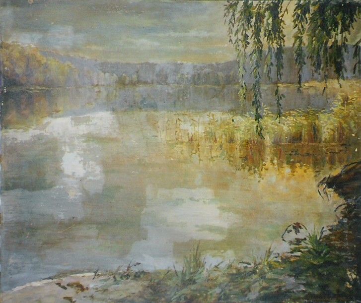 Iwan Trusz (1869-1941), um 1900 "Landschaft am Dnjepr". Öl auf Malpappe. Zustand nach der Restaurierung.