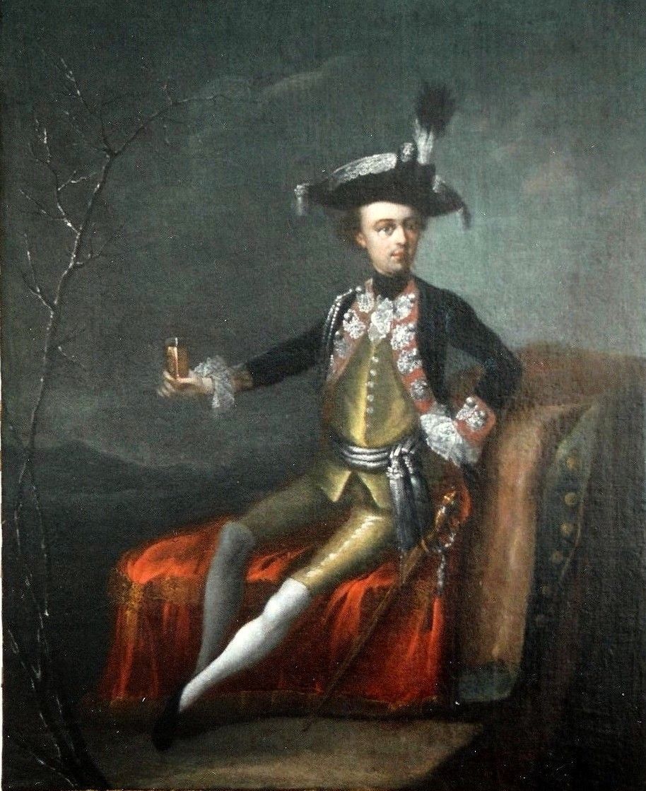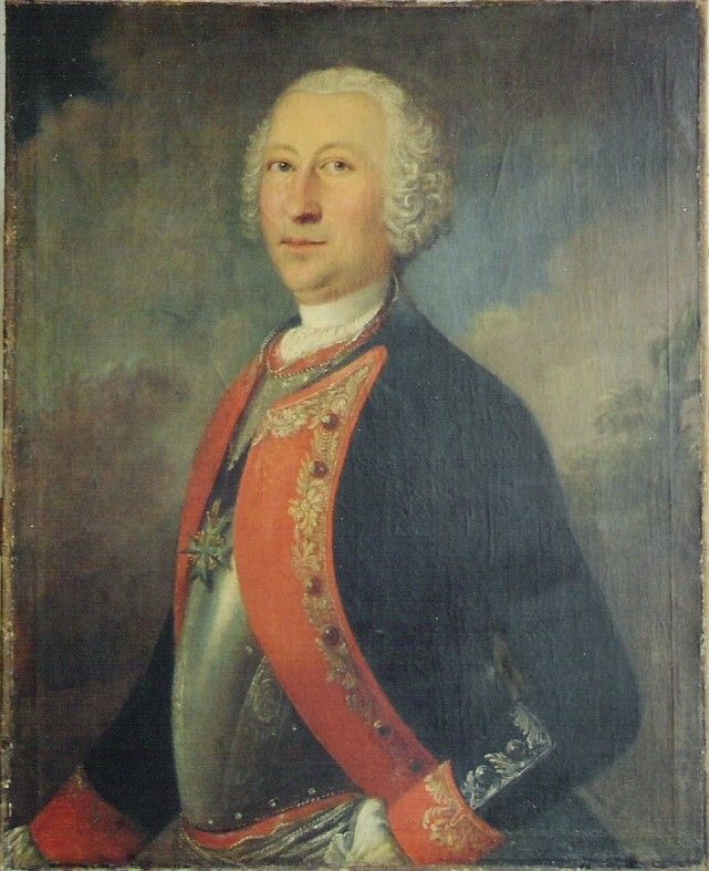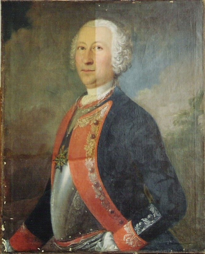 Preußischer Bildnismaler, 1742 "Porträt des Kanzlers Dietrich Graf von Keyserlingk". Öl auf Leinwand. Zustand nach der Restaurierung.