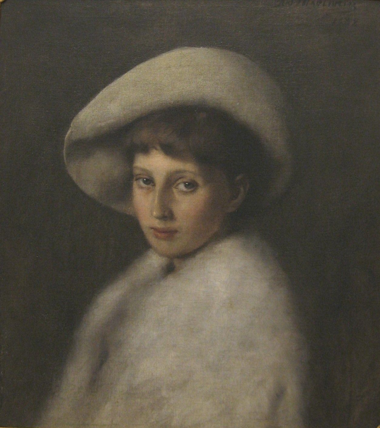 Carl Gussow (1843-1907), letztes Viertel des 19. Jh. "Bildnis eines Mädchens". Öl auf Holztafel. Zustand nach der Restaurierung.