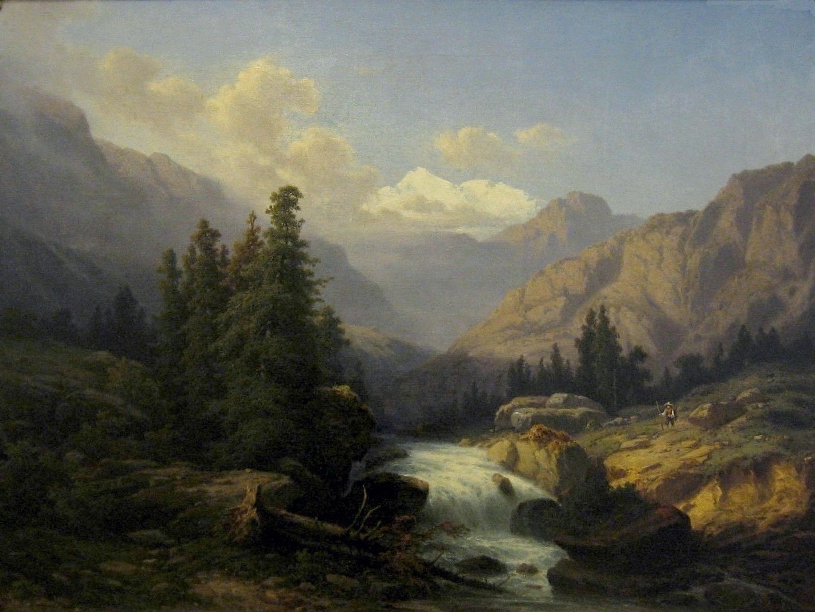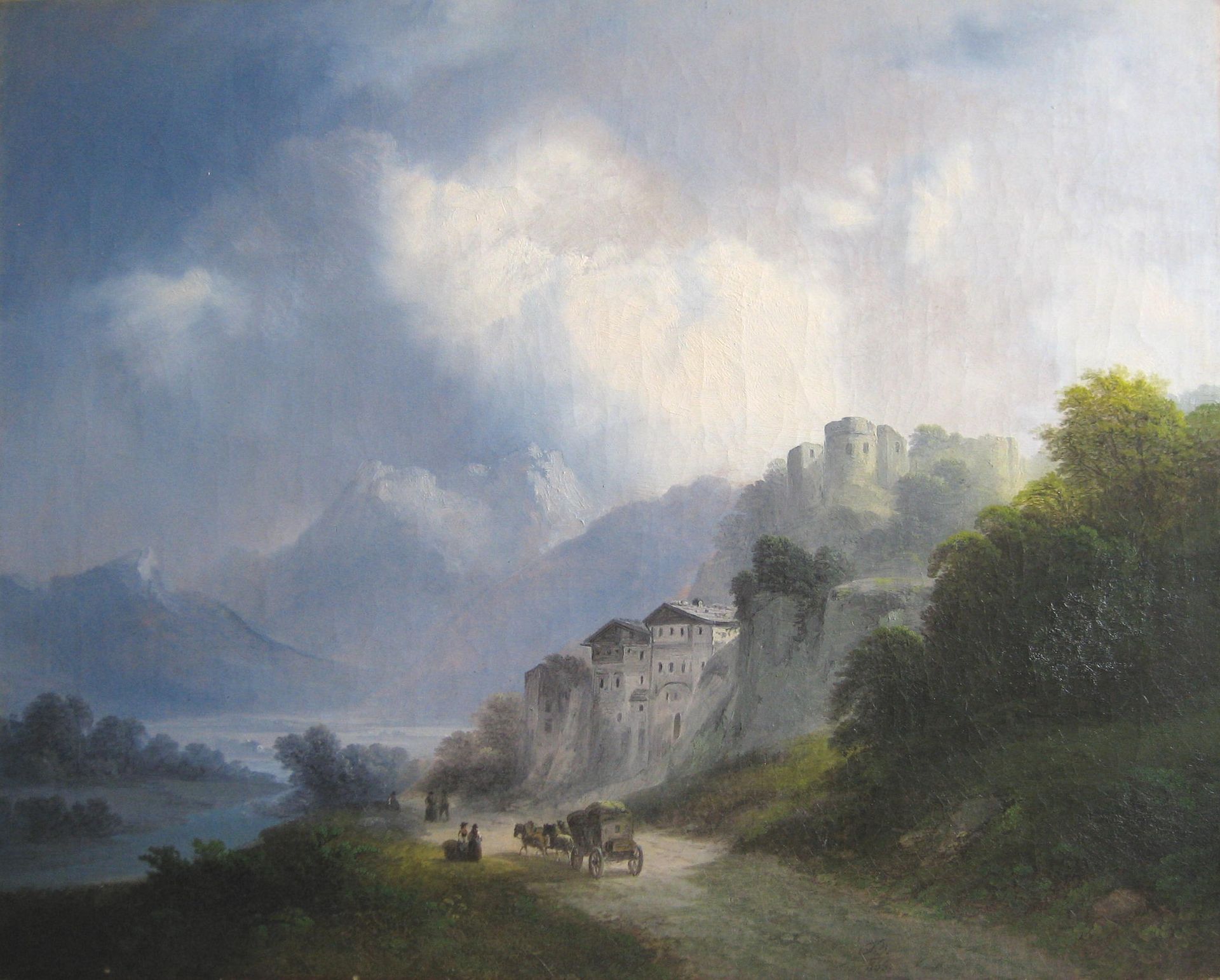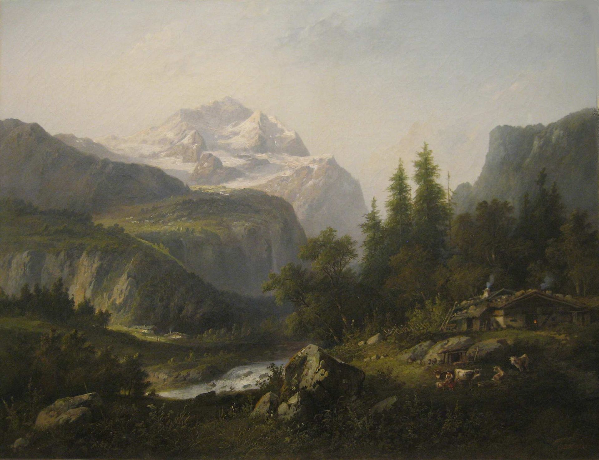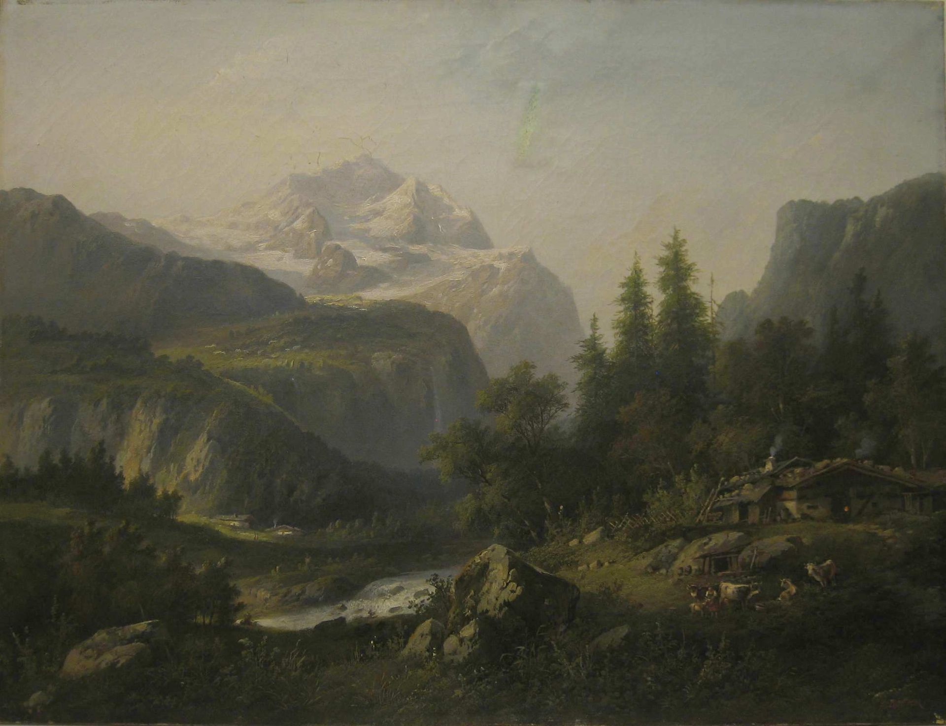 Franz Barbarini (1804-1873), um 1860 "Alpenlandschaft". Öl auf Leinwand. Zustand nach der Restaurierung.