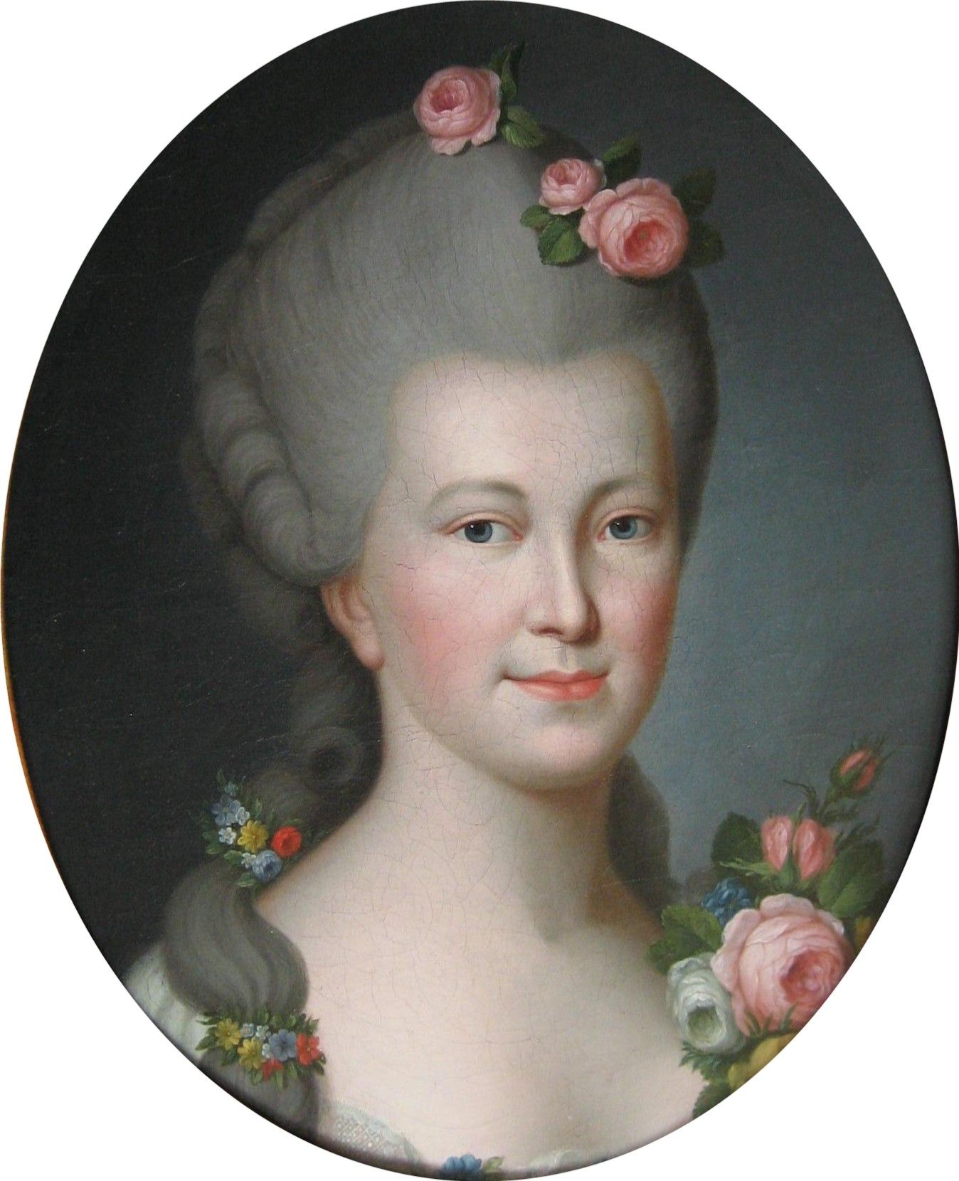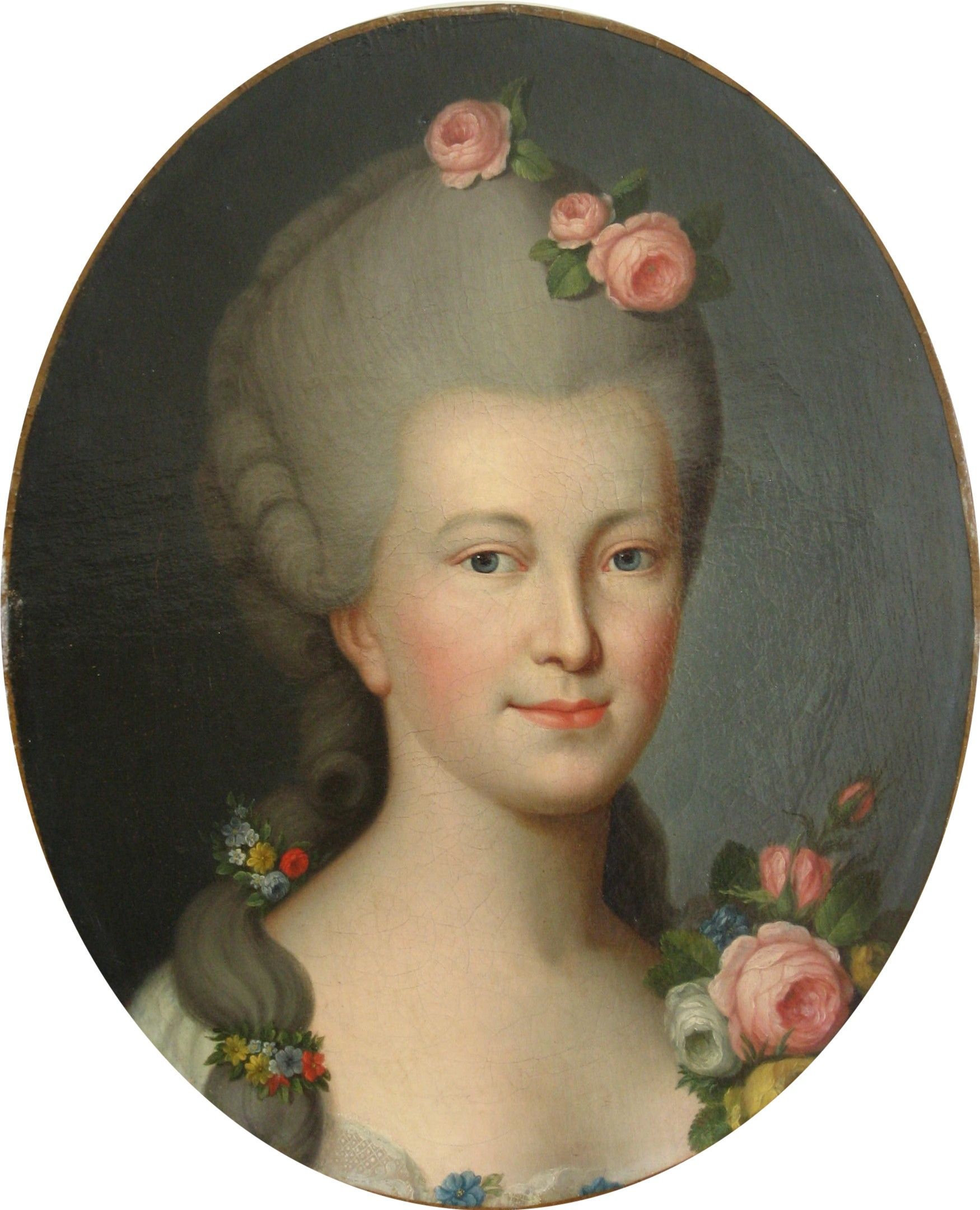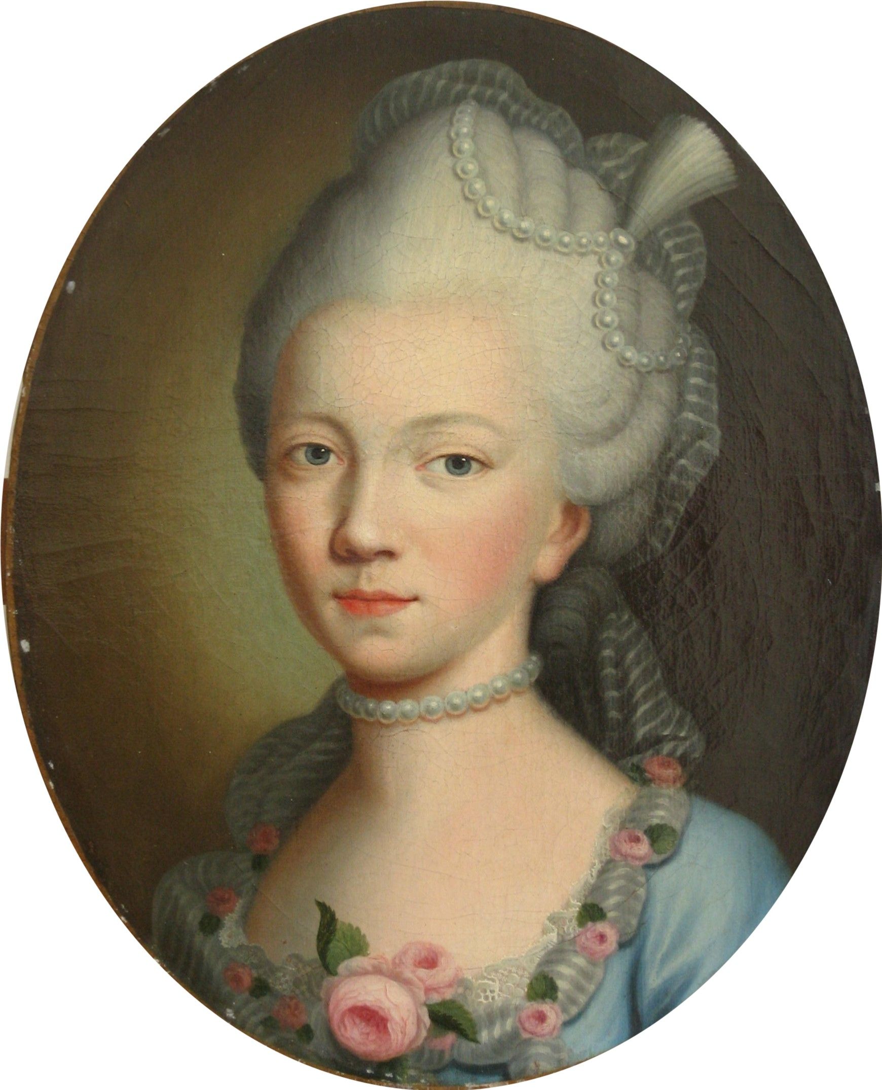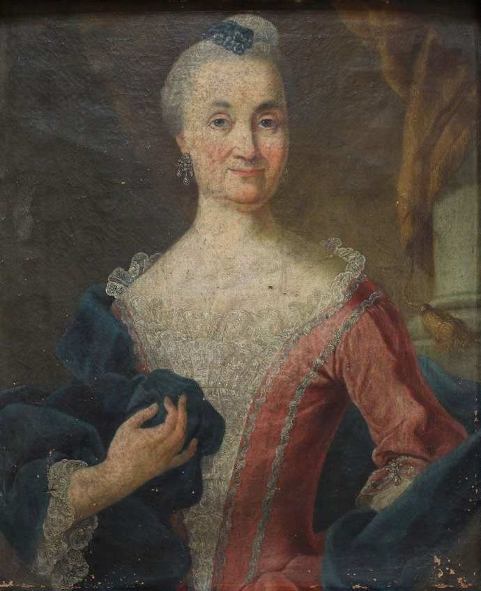 Deutscher Maler, um 1750 "Porträt der Gräfin von Ostein". Öl auf Leinwand. Zustand nach der Restaurierung.