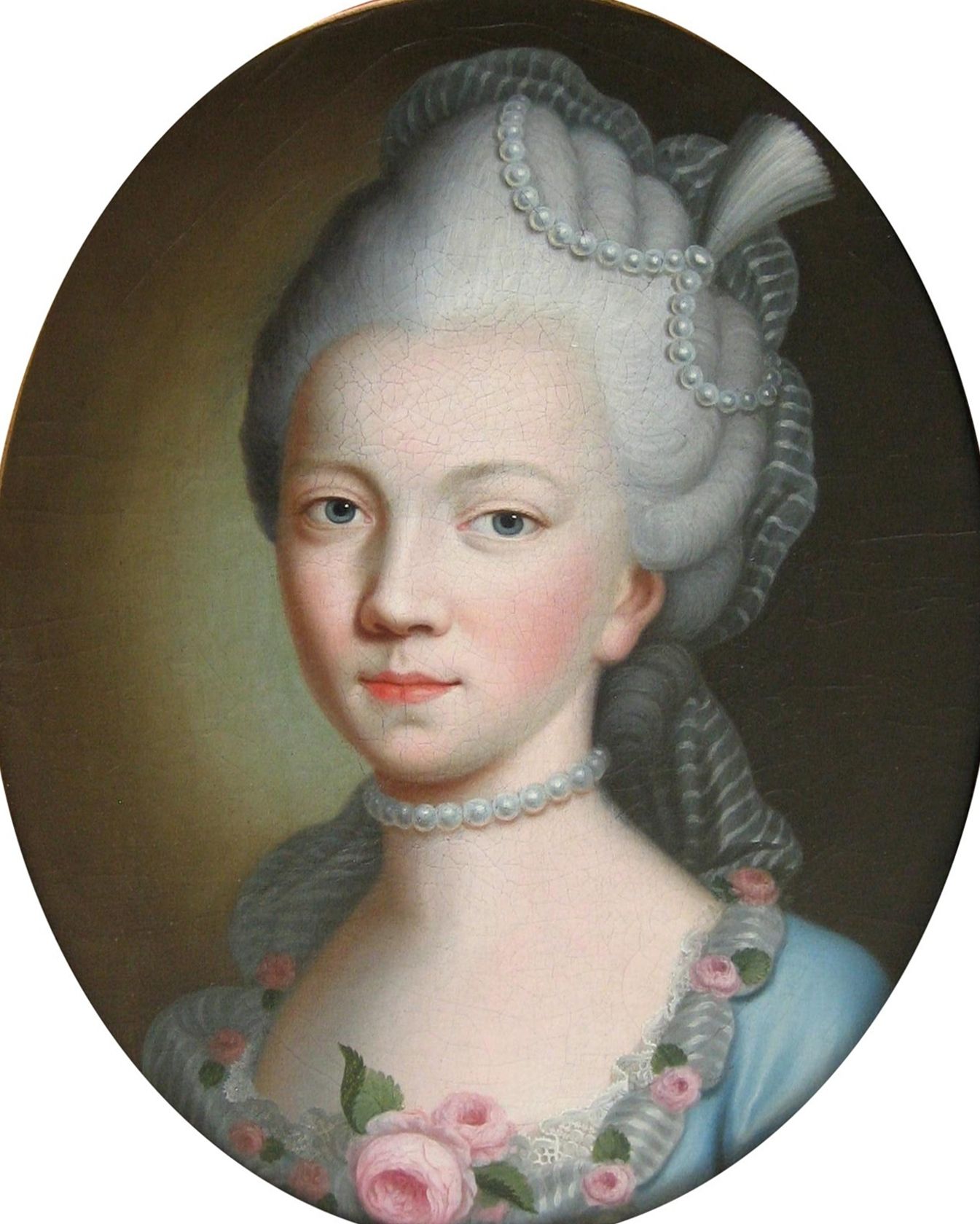 Deutscher Maler, um 1750 "Bildnis der Gräfin von Ostein". Öl auf Leinwand. Detailaufnahme. Zustand nach der Restaurierung.