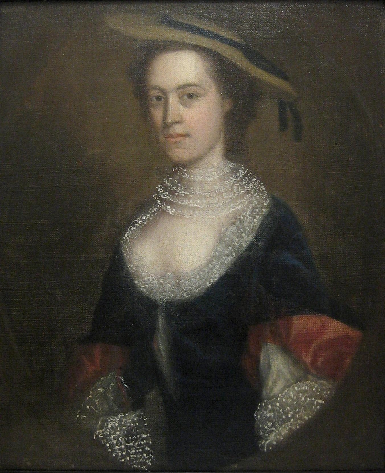 Ringe, Christoph Gottfried (1713-1797) "Bildnis Catharina Dorotha Mahner". Öl auf Leinwand. Zustand vor der Restaurierung (Bildoberfläche stark verschmutzt, Firnis vergilbt, mehrere winzige Malschichtausbrüche, im Hintergrundbereich Übermalungen und Retuschen, Umschlagränder streckenweise ausgerissen und beschädigt).