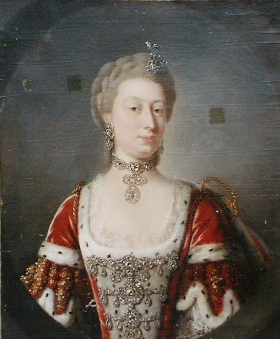 Louis de Silvestre (1675-1760) Umkreis, nach 1743 "Bildnis der Königin Maria Josepha von Polen". Öl auf Leinwand. Zustand vor der Restaurierung (Gesichtspartie vollständig übermalt, stark eingefärbter Firnis; Verschmutzungen; Bild auf Pappe aufgeklebt, ohne Spannrahmen).