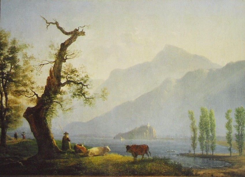 Süddeutscher Maler, vor 1900 "Landschaft mit weidenden Kühen". Öl auf Leinwand. Zustand nach der Restaurierung.