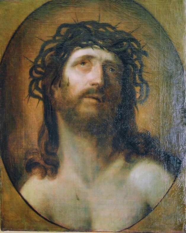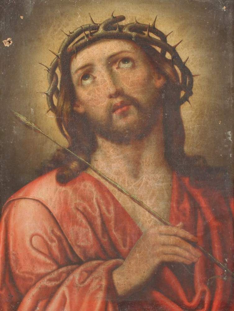 Guido Reni (1575-1624) Nachfolger, wohl 17. Jh. "Christus mit der Dornenkrone". Öl auf Leinwand. Zustand nach der Restaurierung.