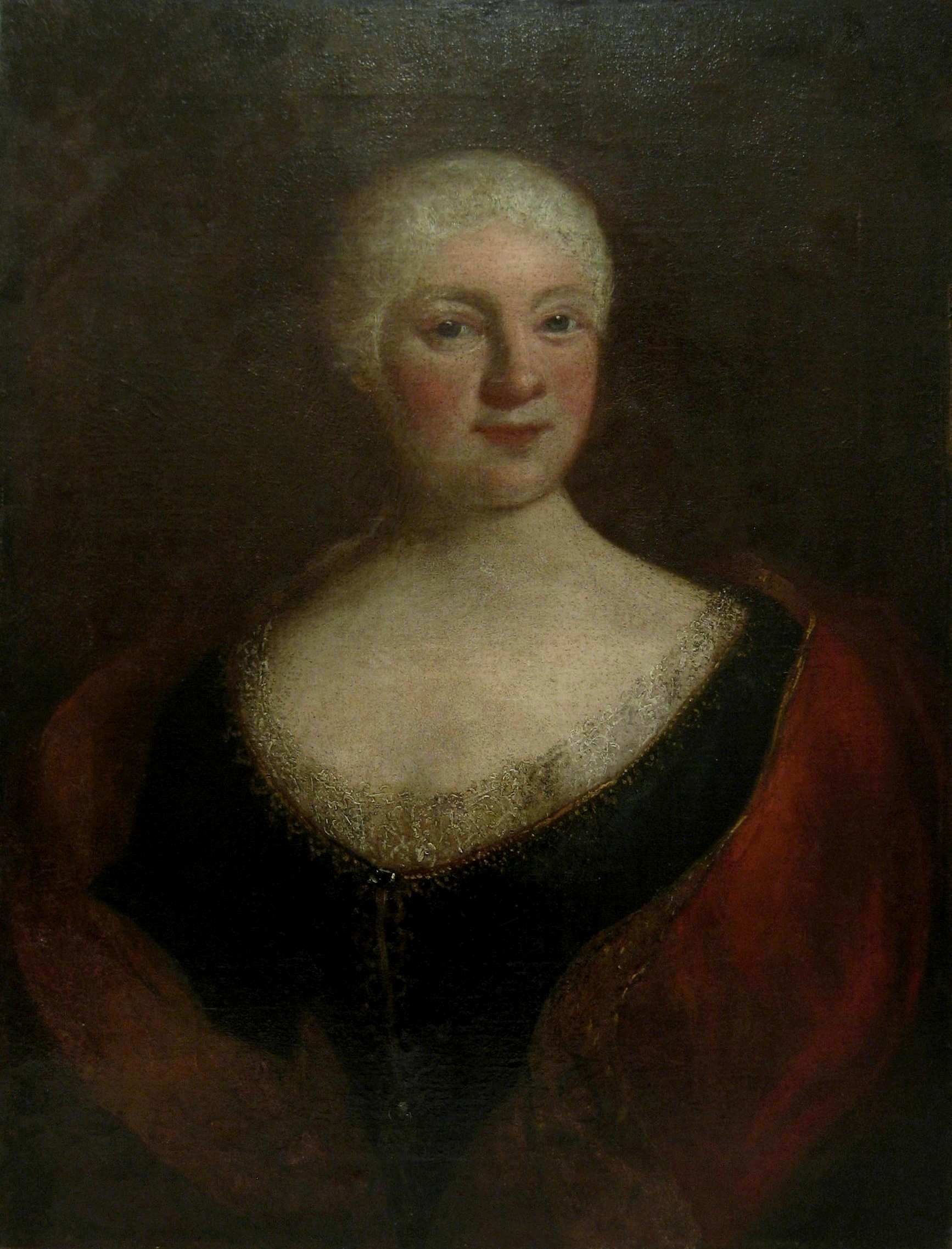Deutscher Bildnismaler, 1. Drittel des 18. Jh. "Bildnis einer Adeligen". Öl auf Leinwand. Zustand nach der Restaurierung (nach Reinigung, Malschichtfestigung, Kittungen und Retuschen).