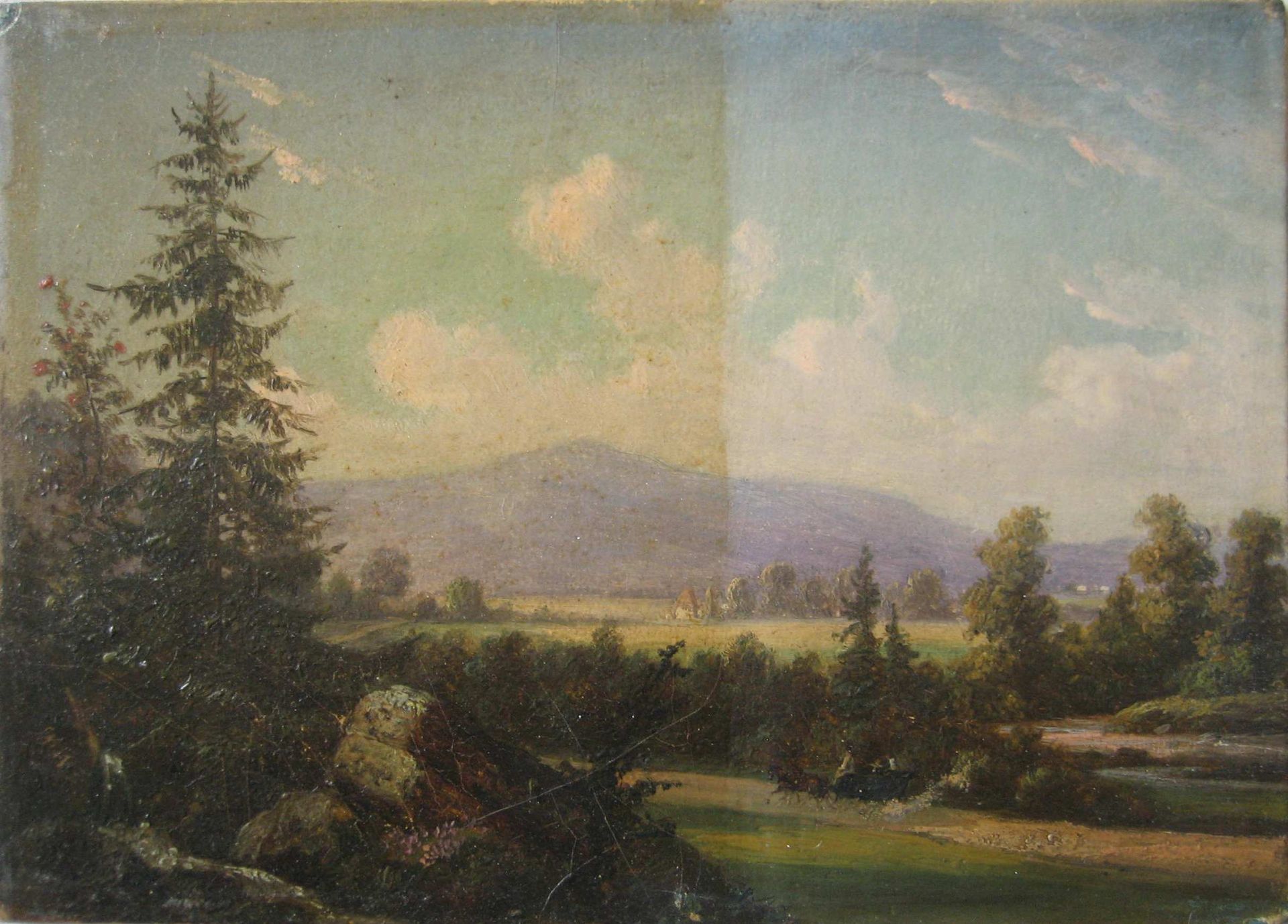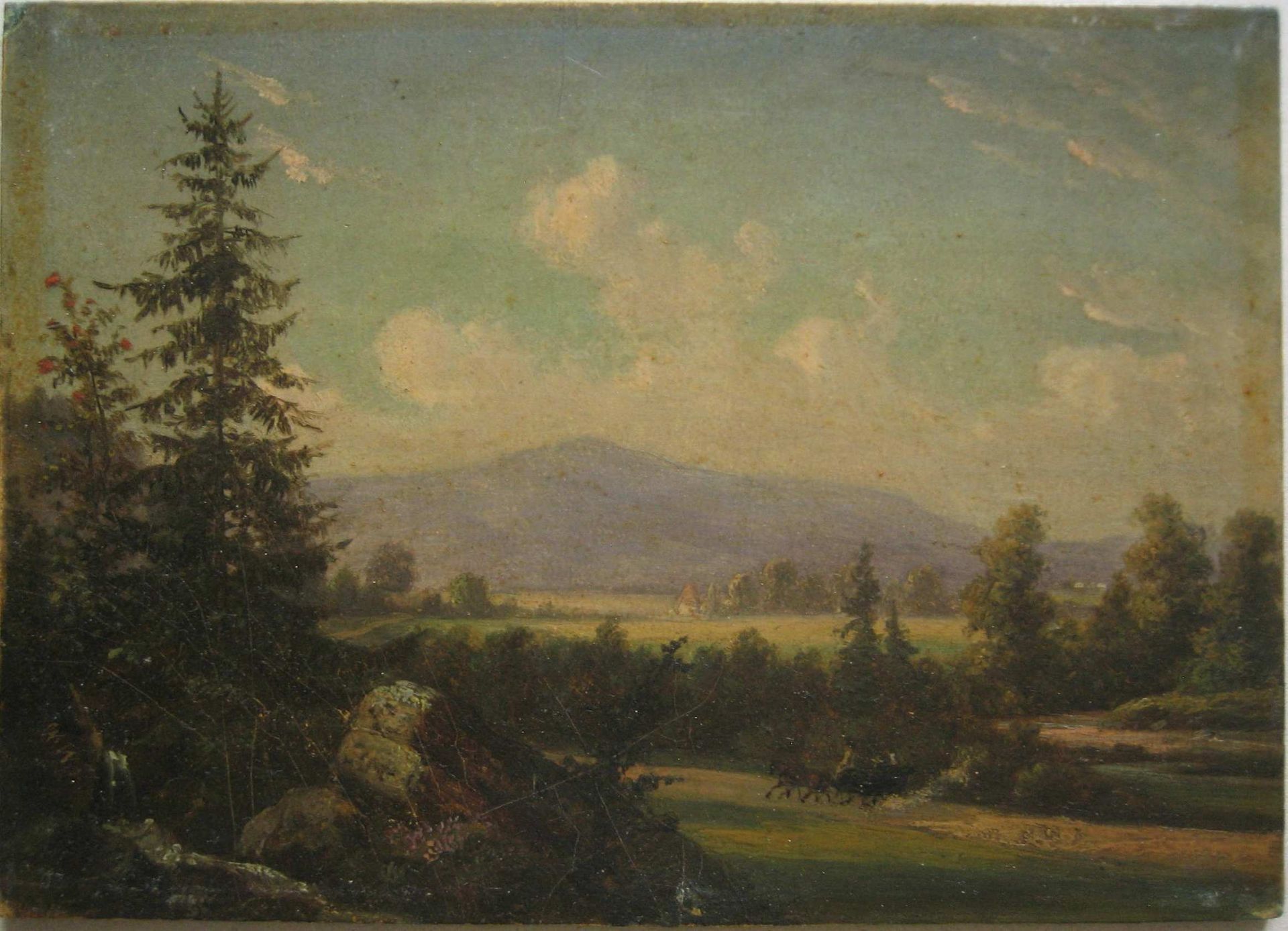 Johann F. W. Wegener (1812-1879), 1861 "Sächsische Schweiz". Öl auf Malkarton. Zustand nach der Restaurierung.