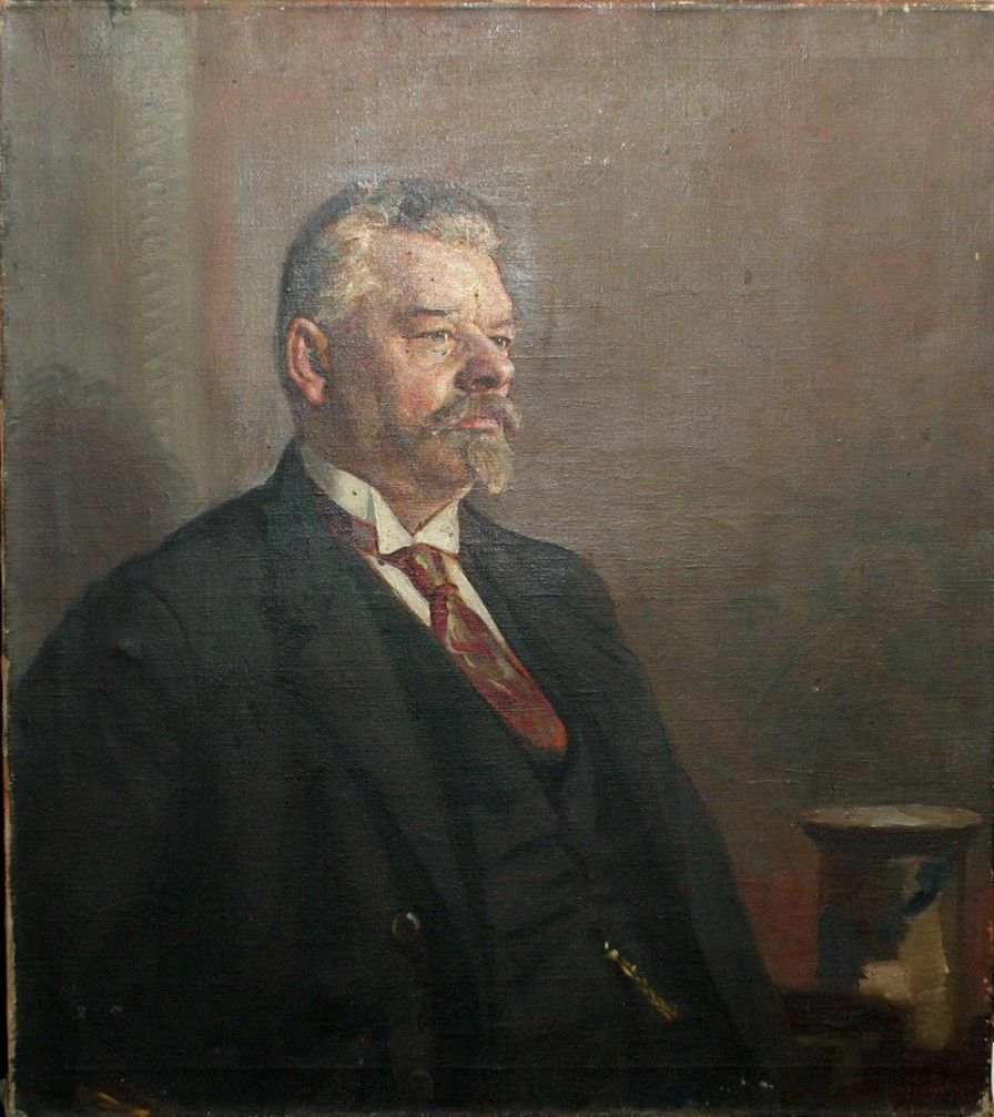Hans K. Safer (1860-1940), 1922 "Bildnis eines Herren". Öl auf Leinwand. Zustand nach der Restaurierung (Doublierpappe entfernt, Leinwanddeformationen beseitigt; alter Firnis und Verschmutzungen entfernt).
