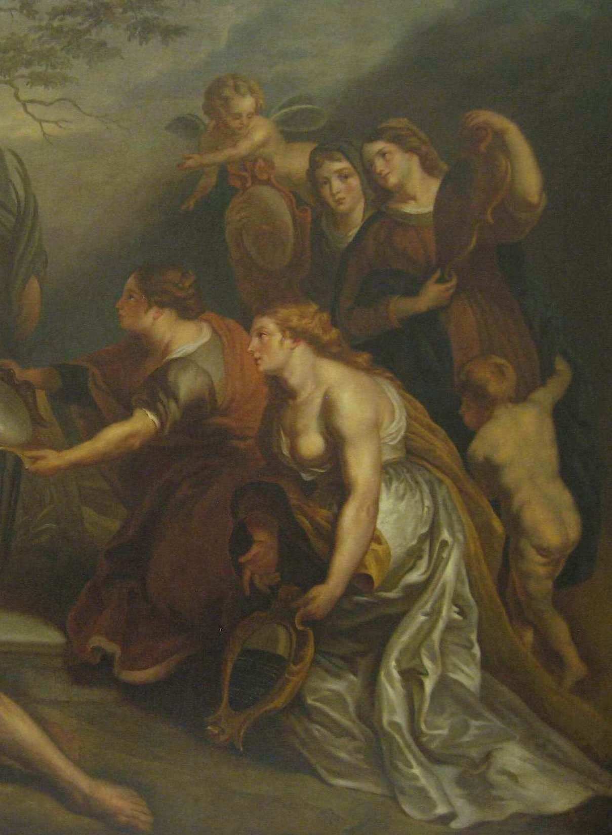 Flämischer Maler, 17. Jh. "Allegorische Darstellung" (Fragment). Öl auf Leinwand. Zustand nach der Restaurierung.