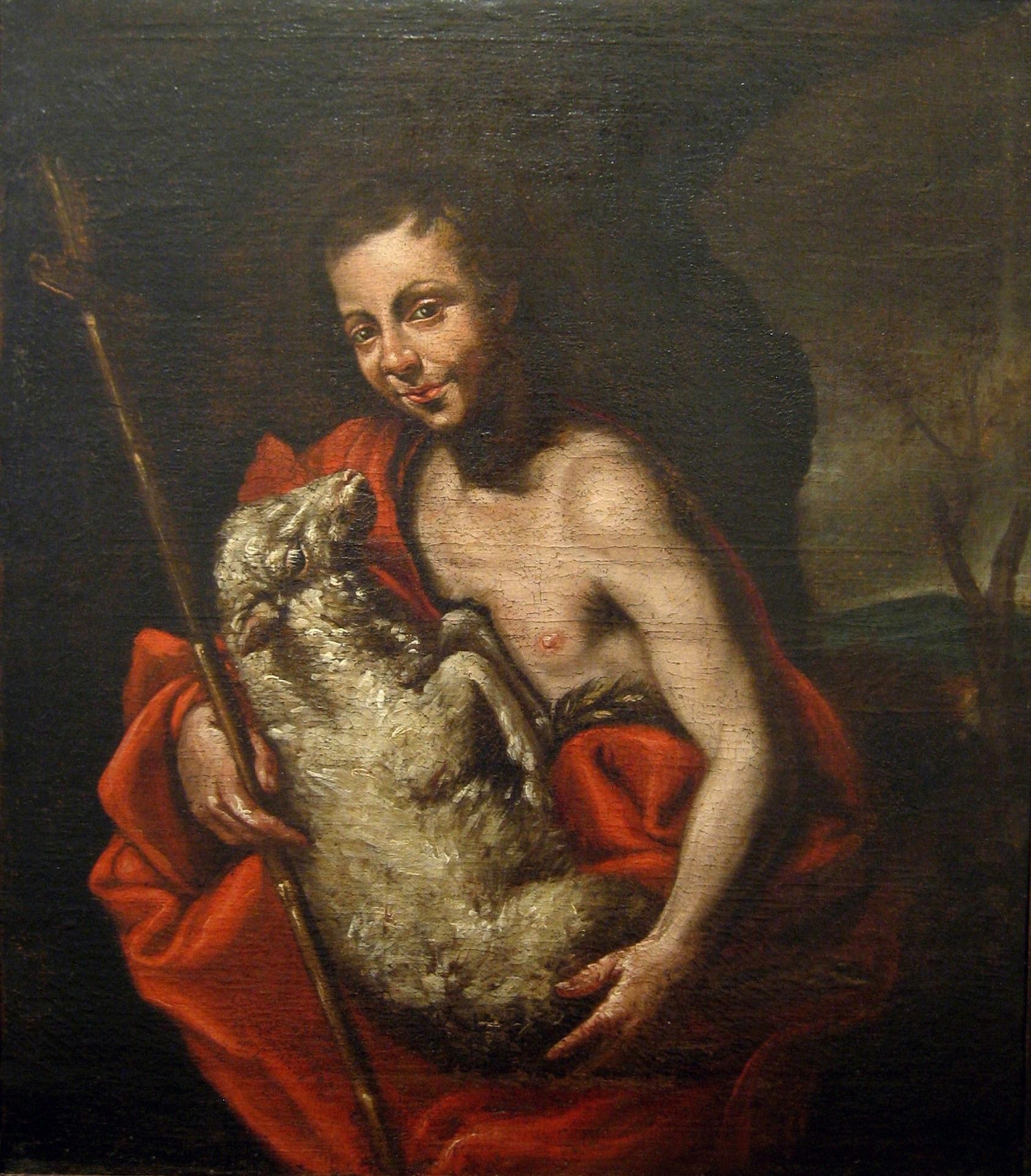 Luca Giordano (1634-1705) Umkreis, 1. Hälfte des 17. Jh. "Johannes der Täufer als Knabe". Öl auf Leinwand. Zustand nach der Restaurierung (nach Reinigung und einigen kleinen Retuschen).